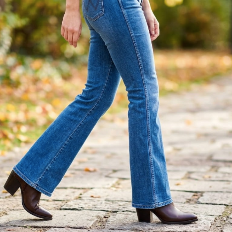 Střihy, které se od kolen dolů rozšiřují (zvonové džíny), jako je Wrangler Willow, zažívají obrovský návrat. Je to střih, který dokáže zázraky s postavou – dokáže ji neuvěřitelně prodloužit. Ale má jednu velkou podmínku: nohavice nesmí vláčet po zemi. Bootcut byl původně navržen tak, aby se nosil přes kovbojské boty, a to musíme ctít.