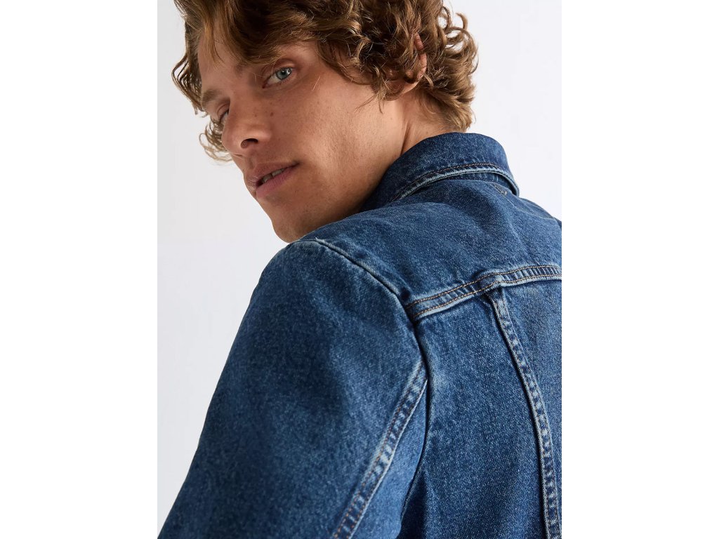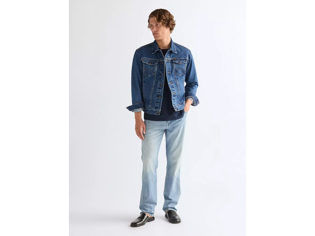 Tato bunda je založena na našem originálním střihu Cowboy Cut® džín, což zajišťuje, že si zachovává všechny kvalitní prvky, které od denimu očekáváte. **Pravidelný střih** poskytuje mírný prostor v oblasti těla a rukávů, což zajišťuje pohodlí bez kompromisů na stylu. **Kamenem praný modrý denim** je mírně vybledlý, což dodává bundě přirozený, obnošený vzhled, který je dnes tak žádaný.