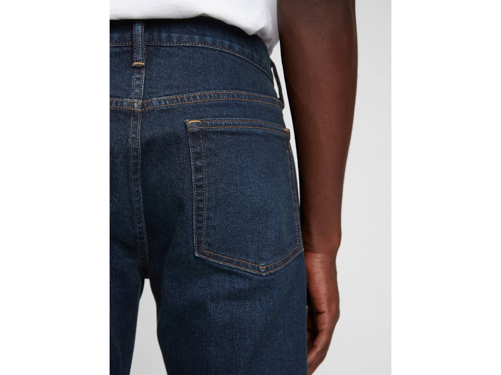Džíny se vyznačují přiléhavým střihem přes boky a stehna s úzkými nohavicemi, což zajišťuje moderní a elegantní vzhled. Tento střih je oblíbený mezi mladými lidmi, kteří hledají džíny, které nejen skvěle vypadají, ale také se pohodlně nosí. Klasický pětikapsový design v tmavě indigo odstínu dodává džínům univerzální a nadčasový styl, který se hodí k jakémukoliv outfitu.