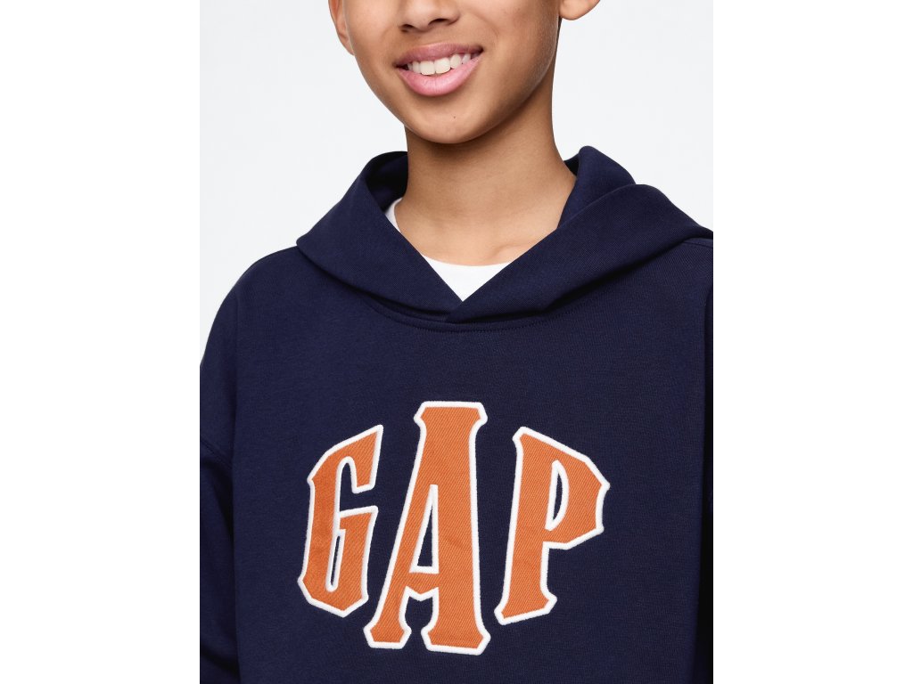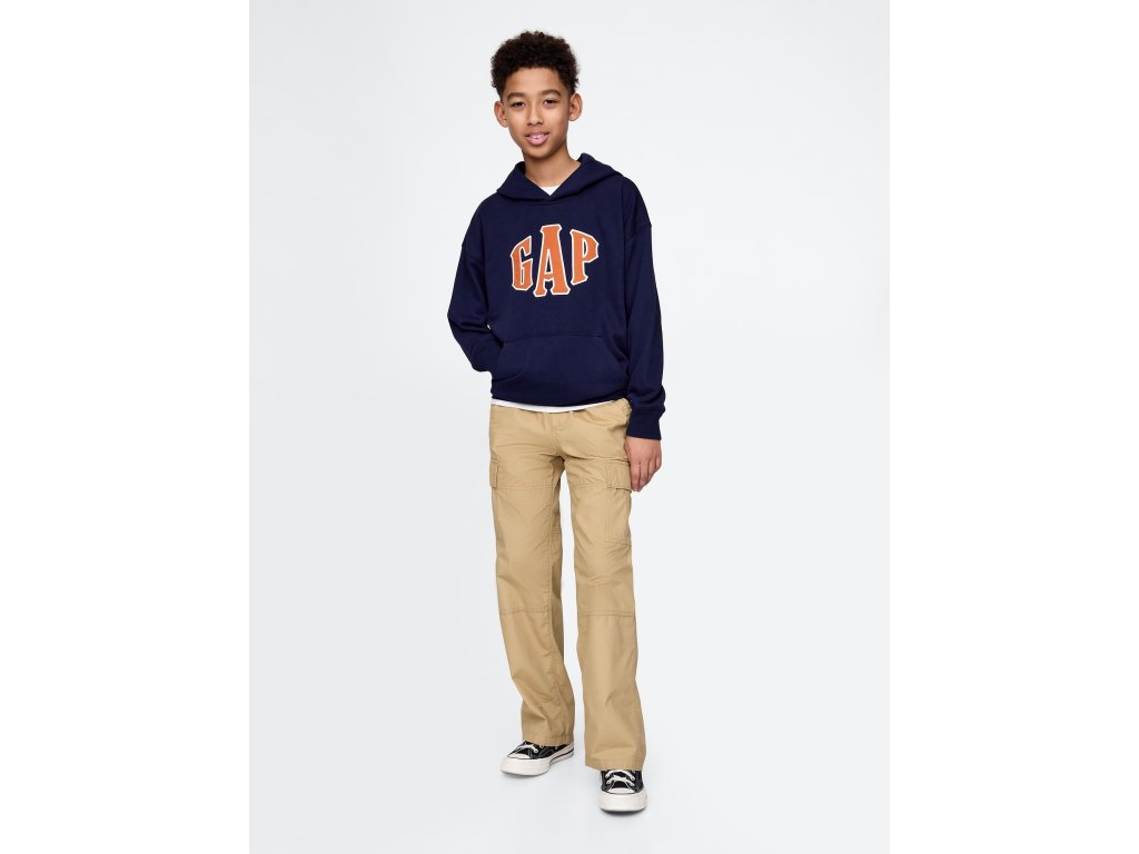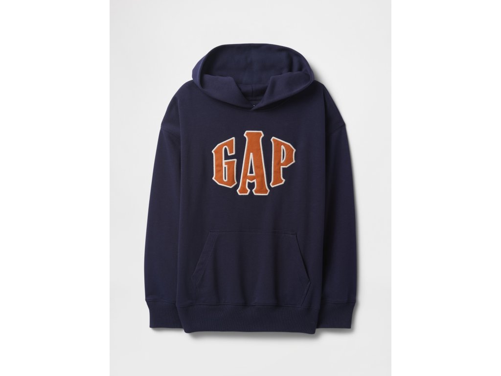 Měkká dětská mikina s kapucí z materiálu French terry a směsi bavlny je perfektní volbou pro pohodlné každodenní nošení. Mikina je vybavena kapucí, dlouhými rukávy se žebrovanými manžetami a praktickou kapsou, která dodává stylový detail. Na přední straně ji zdobí moderní logo Gap, které podtrhuje její trendy vzhled. Žebrovaný spodní lem zajišťuje, že mikina dobře sedí a drží svůj tvar. Vyrobena je z 23 % recyklovaného polyesteru, což přispívá ke snižování spotřeby přírodních zdrojů a odpadu. Uvolněný střih s rovnými liniemi a pohodlnými rukávy zaručuje maximální komfort – ať už doma, na hřišti, nebo ve škole. Pokud preferujete užší střih, doporučujeme zvolit o jednu velikost menší.Doplňkové parametry