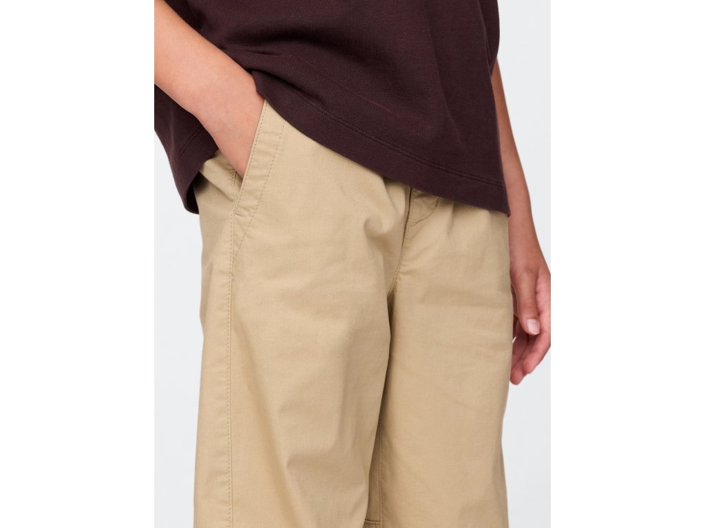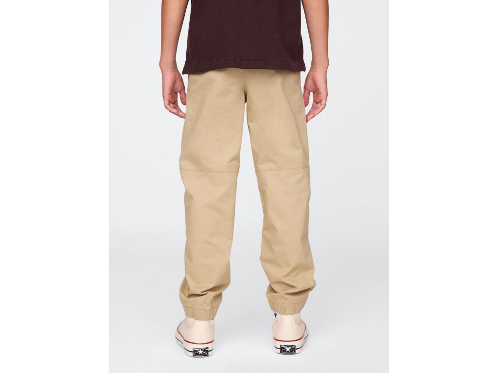 Chlapecké kalhoty v jogger stylu jsou navržené pro každodenní pohodlí a volnost pohybu. Ušité z měkkého a pružného bavlněného kepru, který je příjemný na dotek a zároveň dostatečně odolný pro dětské aktivity. Elastický pas s funkční šňůrkou usnadňuje oblékání a umožňuje přizpůsobení podle potřeby. Kalhoty mají přední šikmé kapsy, zadní kapsy a pružné lemy na nohavicích, které zajišťují pohodlí a sportovní vzhled. Součást programu Washwell™, který snižuje spotřebu vody při výrobě. Tento produkt vznikl v továrně zapojené do iniciativ RISE a P.A.C.E., které podporují rovnost pohlaví a posílení postavení žen. Střih je uvolněný po celé délce s mírně zúženými nohavicemi.Doplňkové parametry