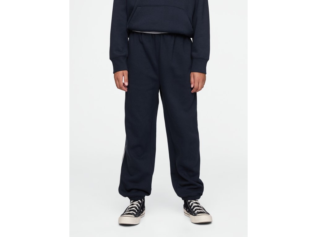 Měkké dětské tepláky z fleecu s bavlněnou směsí jsou ideální volbou pro pohodlí při každodenních aktivitách. Mají elastický pas s vnitřními šňůrkami, které umožňují snadné přizpůsobení, a praktické boční kapsy doplněné zadní kapsou na drobnosti. Spodní lem je elastický a jemně stažený, což zajišťuje pohodlné nošení a moderní vzhled. Tepláky jsou vyrobeny z 23 % recyklovaného polyesteru, což přispívá ke snižování odpadu a šetrnému využívání přírodních zdrojů. Tento produkt byl vytvořen ve výrobně, která podporuje rovnost pohlaví a posílení postavení žen prostřednictvím programů RISE a P.A.C.E. od Gap Inc., jež pomáhají pracovníkům rozvíjet dovednosti a sebevědomí. Tepláky mají volný střih a široké nohavice, které poskytují maximální pohodlí a volnost pohybu. Jsou ideální na doma, na hřiště i do školy. Materiál: 77% Cotton 23% PolyesterDoplňkové parametry