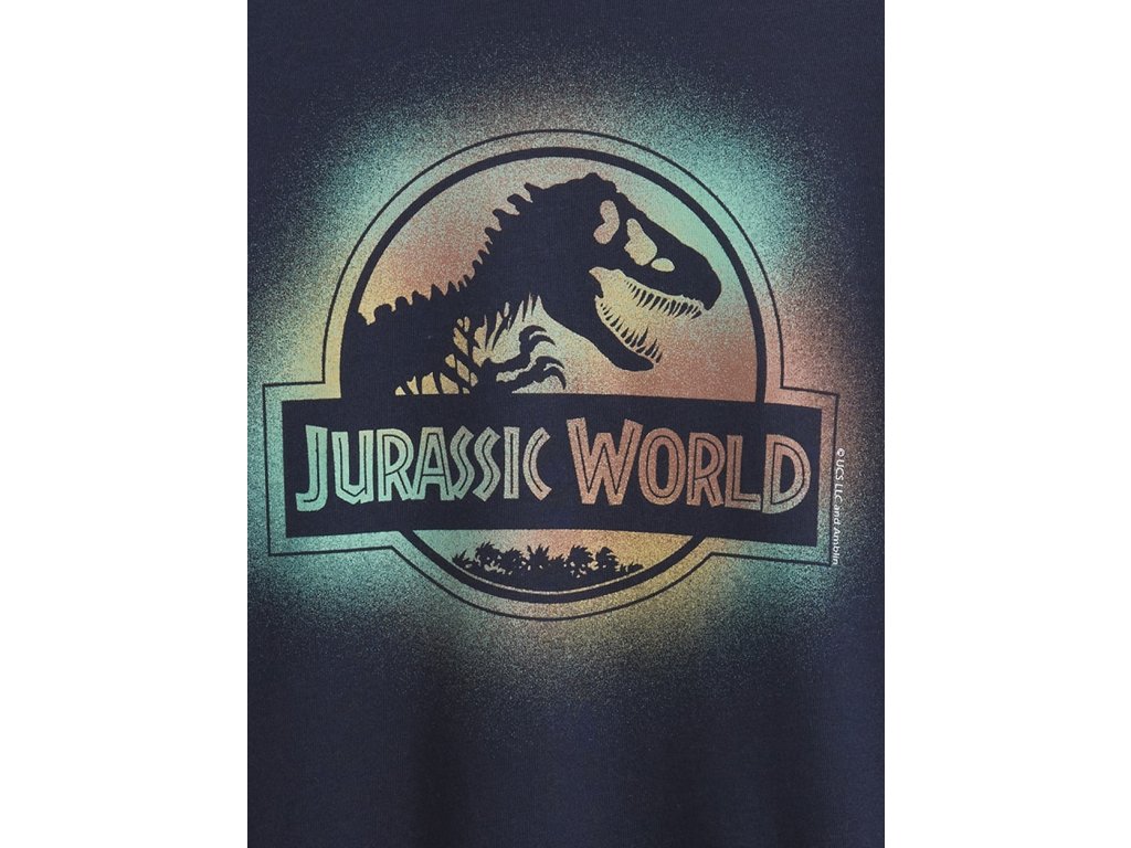 Pohodlné tričko s krátkým rukávem a výraznou grafikou s motivem Jurského světa na přední straně. Je ušité z měkkého žerzeje, který je příjemný na nošení po celý den. Kulatý výstřih a rovný, volnější střih sahající do úrovně boků zajišťují pohodlí i volnost pohybu. Skvělý kousek pro malé fanoušky dinosaurů.Doplňkové parametry