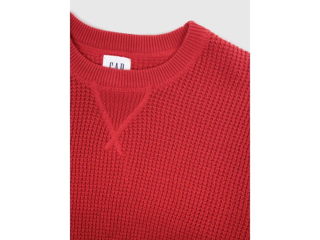 Dětský pletený svetr. Měkká pletenina s vaflovým vzorem. Kulatý výstřih a dlouhé rukávy s náplety. Jednobarevný.Doplňkové parametry