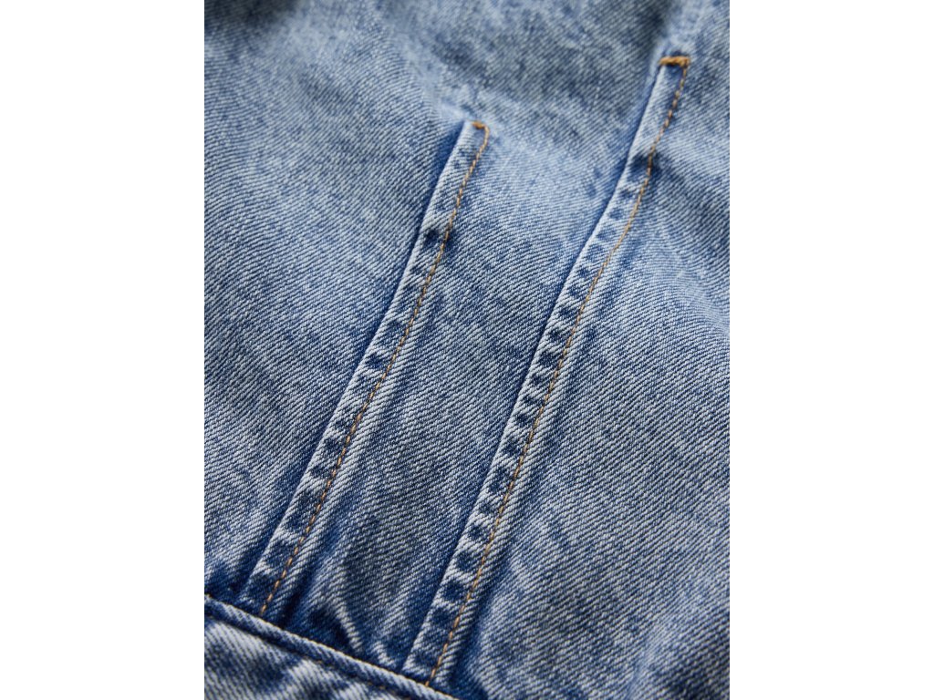 Dámská džínová bunda s mírně zkráceným střihem je nadčasovým kouskem, který nikdy nevyjde z módy. Je součástí programu Washwell, který využívá při výrobě alespoň o 20 % méně vody ve srovnání s běžnými metodami, což od roku 2016 přispělo k úspoře miliard litrů vody. Obsahuje také 5 % recyklované bavlny, což snižuje odpad a šetří přírodní zdroje. Vyrobena z autentického denimu s ikonickým designem, bunda má klasický límeček, zapínání na knoflíky a dlouhé barrel rukávy s volnějším střihem. Na hrudi jsou praktické náprsní kapsy a šikmé kapsy, které přidávají styl i funkčnost. Bunda má střih, který přiléhá k tělu, a délku lehce nad boky, snadno se kombinuje s šaty, sukněmi i kalhotami. Modelky ve velikosti S měří 172–180 cm, mají obvod pasu 60–66 cm a boky 84–97 cm. Modelky ve velikosti XL měří 172–180 cm, mají obvod pasu 86–91 cm a boky 114–127 cm. Materiál: 100% CottonDoplňkové parametry