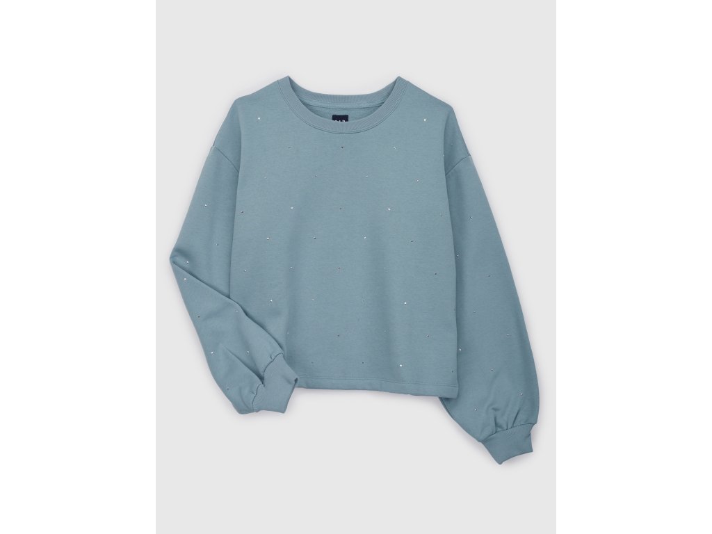 Dámská mikina s kamínky. Crop délka a rovný střih. S fleece na vnitřní straně. Výstřih ke krku. Dlouhé spadlé rukávy s náplety. S příměsí recyklovaného polyesteru.Doplňkové parametry