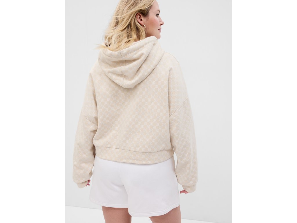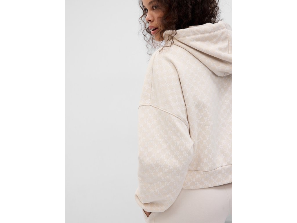 Dámská mikina v kratší délce. Drobný plošný logo vzor. Kapuce se stahovací šňůrkou. Dlouhé spadlé rukávy. Široké a pružné náplety. Měkká teplákovina.Doplňkové parametry