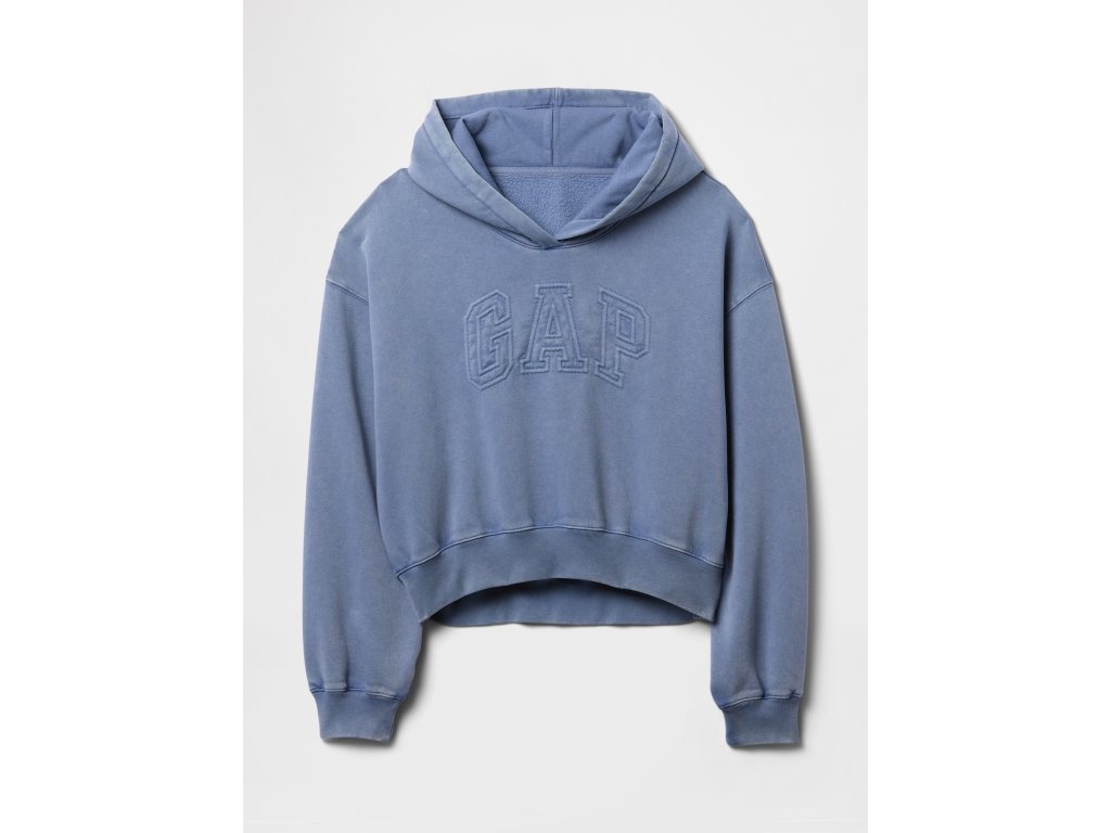 Dámská zkrácená mikina s kapucí z měkkého fleecu a bavlněné směsi je moderním a pohodlným kouskem pro každodenní styl. Mikina má kapuci, dlouhé rukávy s nízko posazenými rameny a žebrované manžety, které zajišťují pohodlí a dotvářejí uvolněný vzhled. Na přední straně ji zdobí ikonické logo Gap. Žebrovaný spodní lem zvýrazňuje zkrácený střih sahající do pasu, zatímco oversize střih poskytuje volnost a maximální pohodlí. Mikina je vyrobena z 23 % recyklovaného polyesteru, což přispívá ke snižování spotřeby zdrojů a odpadu. Tento produkt byl vytvořen ve výrobně, která podporuje rovnost pohlaví a posílení postavení žen prostřednictvím programů RISE a P.A.C.E. od Gap Inc. Pro užší střih doporučujeme zvolit o jednu až dvě velikosti menší. Modelky ve velikosti S měří 172–180 cm, mají obvod pasu 60–66 cm a boky 84–97 cm. Modelky ve velikosti XL měří 172–180 cm, mají obvod pasu 86–91 cm a boky 114–127 cm. Materiál: 77% Cotton 23% PolyesterDoplňkové parametry