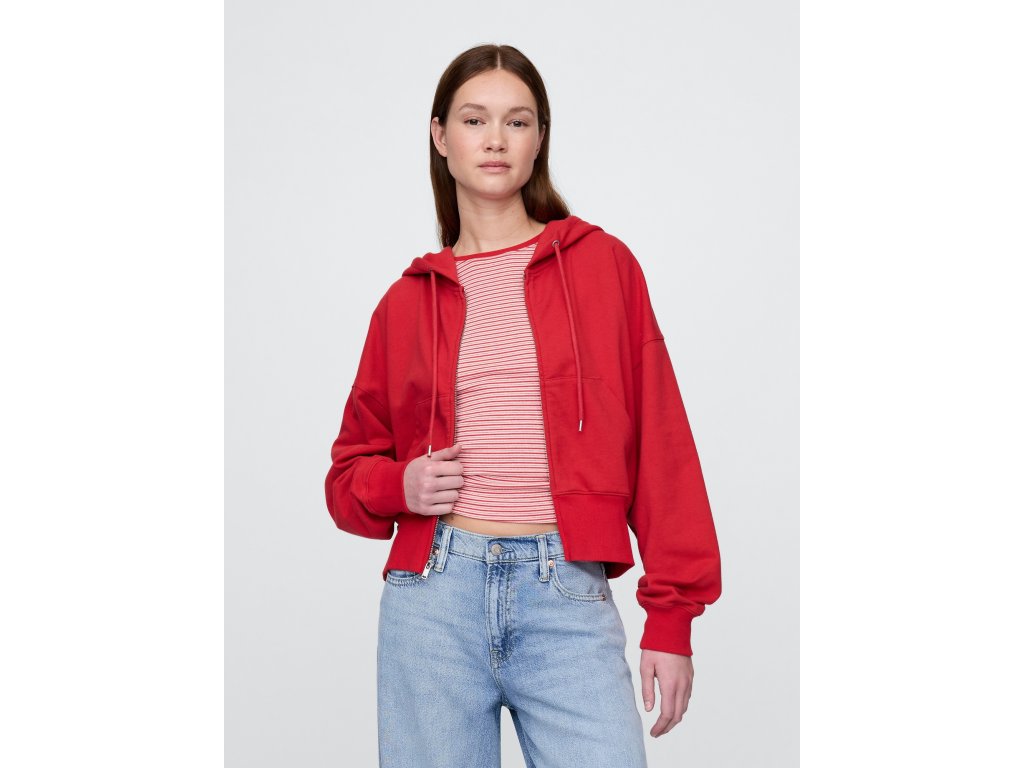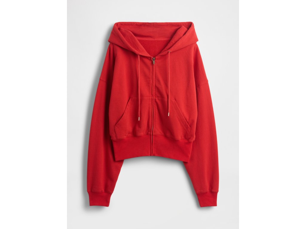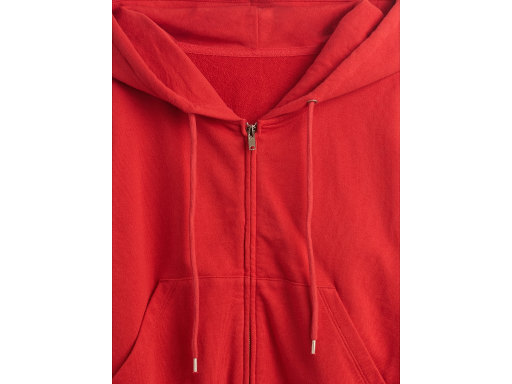 Dámská oversize mikina s kapucí a zipem v lehce zkráceném střihu přináší kombinaci stylu, pohodlí a praktických detailů, díky nimž se skvěle hodí pro volné dny i vrstvení během chladnějších večerů. Měkký, prodyšný materiál poskytuje celodenní komfort, zatímco volnější střih dodává moderní, uvolněný vzhled. Mikina je ušita z těžší francouzské froté teplákoviny s 8% podílem recyklovaného polyesteru. Vnitřní strana je jemně strukturovaná pro ještě větší pohodlí, zatímco vnější povrch zůstává hladký a příjemný na dotek. Výsledná směs nabízí odolnost, prodyšnost i příjemný pocit při nošení. Praktická kapuce se stahovacími šňůrkami, zapínání na zip po celé délce a klokaní kapsy pro uložení drobností nebo zahřátí rukou doplňují funkční výbavu. Dlouhé rukávy s nízko posazenými rameny podtrhují ležérní vzhled, zatímco žebrovaný lem drží tvar a zároveň působí jako stylový detail. Díky 8 % recyklovaného polyesteru jde o udržitelnější volbu, která pomáhá snižovat spotřebu nových surovin a množství odpadu. Oversize střih je volný přes tělo a ideální pro vrstvení. Lehce zkrácená délka sahá nad boky. Modelky ve velikosti S měří 172–180 cm, mají pas 60–66 cm a boky 84–97 cm. Modelky ve velikosti XL měří 172–180 cm, mají pas 86–91 cm a boky 114–127 cm. Pokud preferujete užší střih, doporučujeme zvolit o 1–2 velikosti menší. Materiál: 92% Cotton Better Cotton (BCI), 8% Polyester RecycledDoplňkové parametry