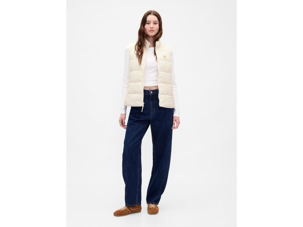 Dámská prošívaná vesta kombinuje lehkost, hřejivost a praktičnost – ideální na každodenní nošení i vrstvení v přechodném počasí. Vyrobena z odolného vodoodpudivého materiálu, který chrání před vlhkostí a větrem. Výplň tvoří 100 % recyklovaný wellon – lehké syntetické vlákno s vlastnostmi podobnými prachovému peří, které výborně izoluje, je prodyšné a zajišťuje pohodlí bez zbytečné hmotnosti. Stojáček chrání krk před chladem, vsazené kapsy zahřejí ruce a zapínání na zip usnadňuje oblékání. Na hrudi decentní logo Gap pro sportovně laděný vzhled. Rovný střih s pohodlným padnutím sahá ke kyčlím.Doplňkové parametry