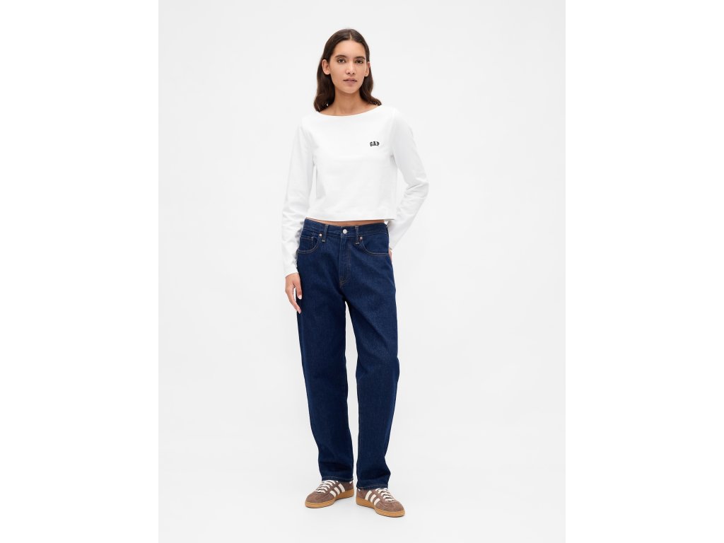 Dámské tričko z těžšího měkkého bavlněného žerzeje. Materiál z pevnější bavlny dodává tričku kvalitní vzhled i delší životnost. Má lodičkový výstřih, dlouhé rukávy a na hrudi logo Gap. Střih Classic je rovný a pohodlný, zkrácená délka sahá do pasu. Vyrobeno ze 100% organické bavlny pěstované bez použití syntetických pesticidů a hnojiv. Modelky nosí velikost S (172–180 cm, pas 60–66 cm, boky 84–97 cm) a velikost XL (172–180 cm, pas 86–91 cm, boky 114–127 cm).Doplňkové parametry