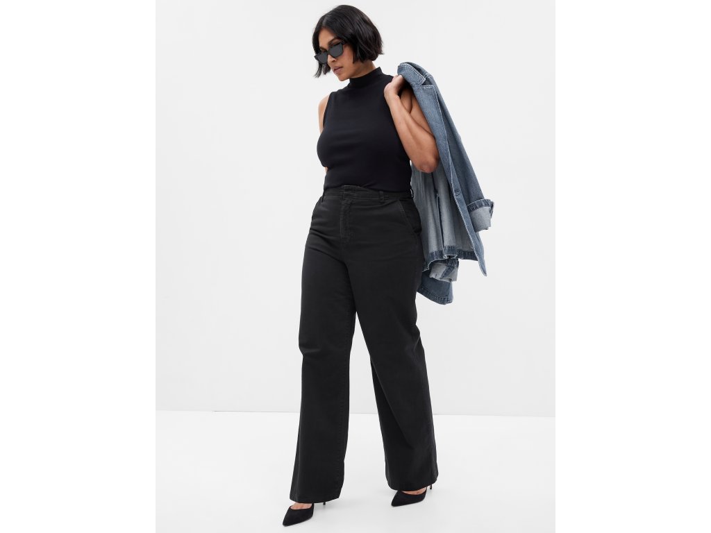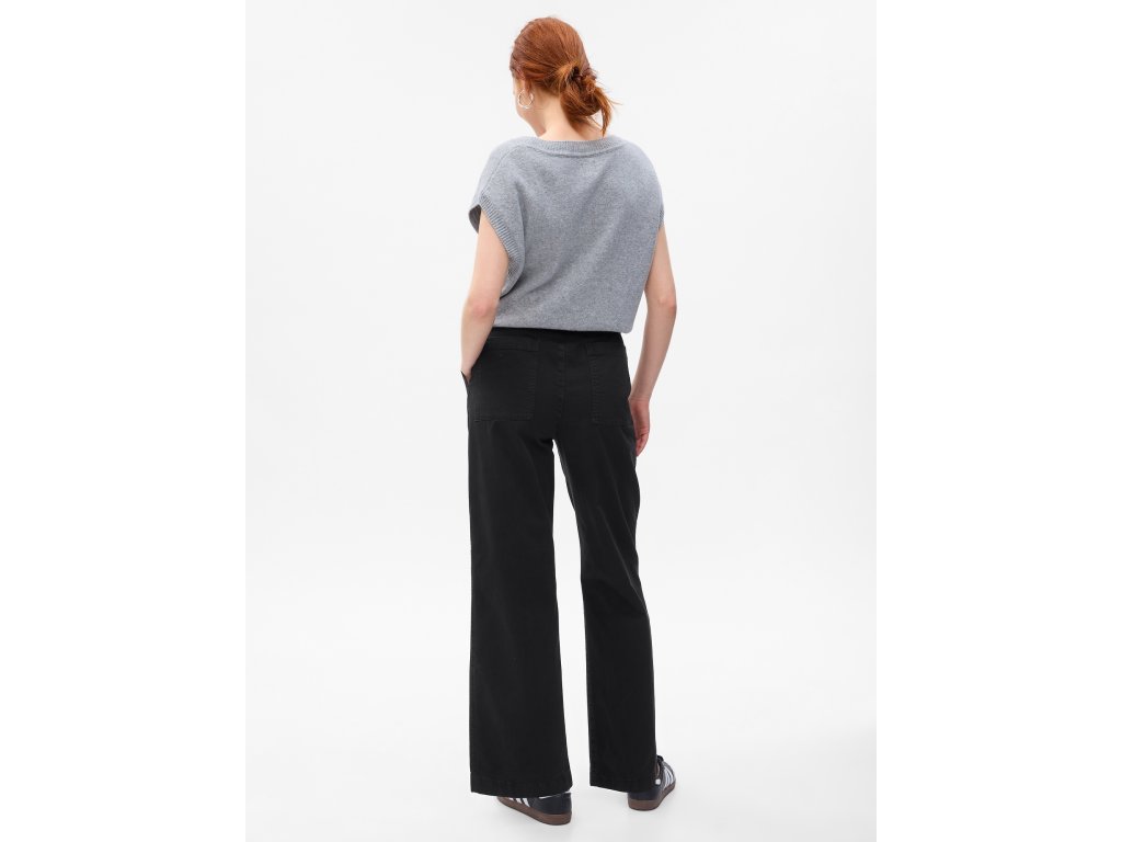 - Dámské khaki kalhoty z měkké bavlny přinášejí pohodlí, ležérní siluetu a retro inspiraci. Středně vysoký pas (24 cm) a volný střih přes boky a stehna přechází do široké nohavice, která vytváří stylový vzhled. Skryté zapínání na háček a zip zachovává hladkou linii pasu. Praktické přední šikmé kapsy a zadní našité kapsy doplňují funkční provedení. Součást programu Washwell™, který šetří vodu při praní. Vyráběno v továrně zapojené do iniciativy P.A.C.E. – vzdělávacího programu podporujícího ženy v oděvním průmyslu. Modelky ve velikosti 27 měří 172–180 cm, mají pas 60–66 cm a boky 84–97 cm. Modelky ve velikosti 33 mají pas 86–91 cm a boky 114–127 cm.