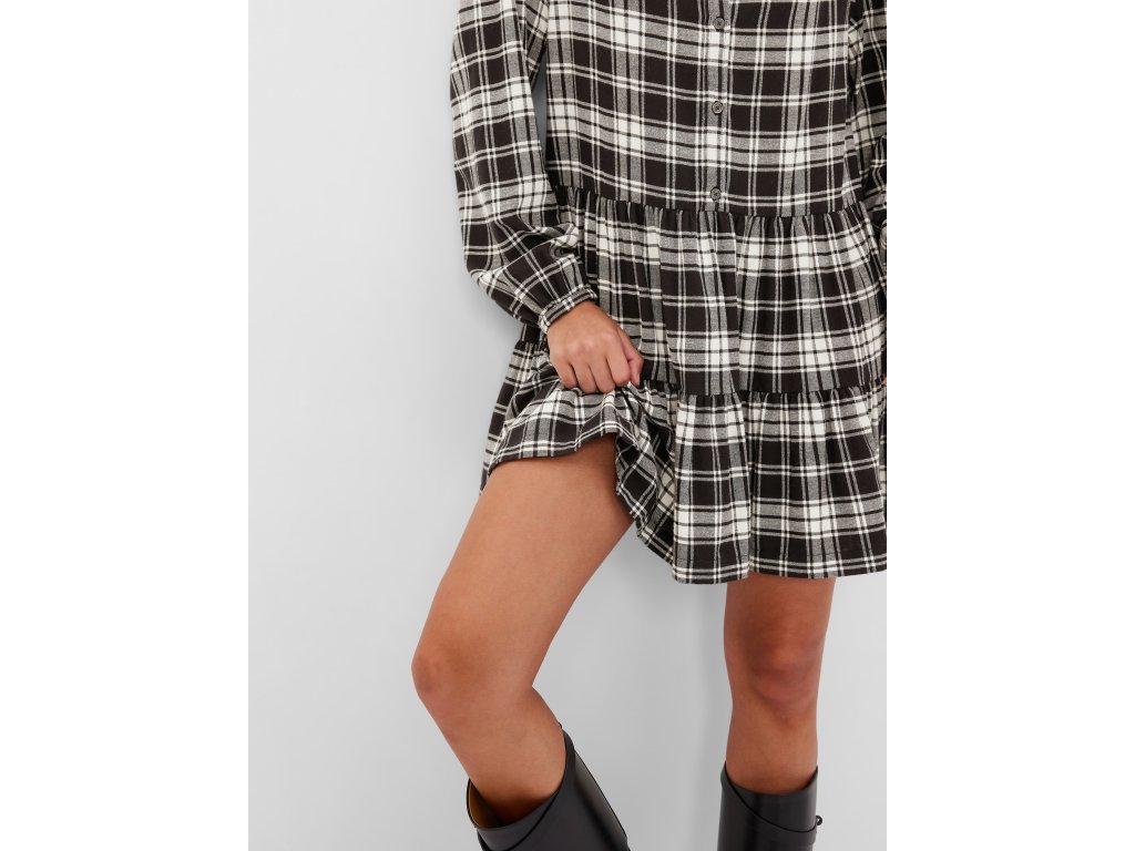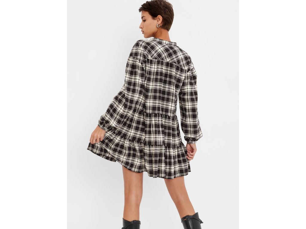 Dámské kostkované šaty. Kulatý výstřih se zapínáním na knoflíky. Dlouhé spadlé balónové rukávy. Střih do A. Volánová sukně. 100% bavlna.Doplňkové parametry