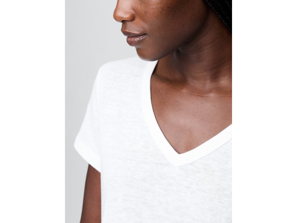 Dámské zkrácené tričko z lněné směsi s výstřihem do „V“ nabízí svěží a nenucený styl s důrazem na pohodlí, lehkost a čisté linie – ideální volba pro teplejší dny i vrstvené outfity. Směs lnu je odborně zpracovaná tak, aby byla měkká, příjemně chladivá a přirozeně splývavá, což zajišťuje komfort i při vyšších teplotách. Tričko má výstřih do „V“, krátké rukávy a rovný střih, který se uvolněně přizpůsobí postavě. Dekorativní svislý šev na zadním dílu dodává minimalistickému designu jemný detail. Ultra zkrácená délka sahá nad pas, díky čemuž se top výborně kombinuje s kalhotami nebo sukněmi s vysokým pasem a vytváří moderní siluetu bez zbytečného objemu. Vyrobeno v rámci etických iniciativ RISE a P.A.C.E. společnosti Gap Inc., které podporují rovnost žen a mužů a pomáhají pracovníkům ve výrobě budovat dovednosti, sebevědomí a odolnost pro lepší pracovní i osobní život. Straight fit: Klasický rovný a uvolněný střih pro každodenní volnost. Ultra zkrácená délka nad pas. Modelky ve velikosti S měří 172–180 cm, mají pas 60–66 cm a boky 84–97 cm. Modelky ve velikosti XL mají pas 86–91 cm a boky 114–127 cm. Materiál: 52% Linen Conventional, 48% Polyester ConventionalDoplňkové parametry