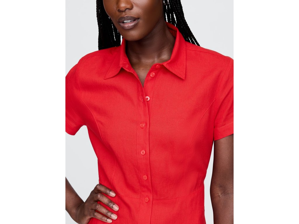 Dámské lněné maxi košilové šaty spojují nadčasovou eleganci s maximálním pohodlím. Měkká směs lnu s těžší gramáží přináší klasický vzhled s ještě vyšší úrovní komfortu, díky čemuž jsou šaty ideální pro celodenní nošení. Klasický košilový límeček a krátké rukávy dodávají sofistikovaný a ležérní styl, zatímco celopropínací knoflíková léga umožňuje snadné oblékání i přizpůsobení stylingu. Šaty mají classic fit & flare střih, který se pohodlně přizpůsobí postavě a vytváří ženskou siluetu s volnějším padnutím. Lehké, elegantní a snadno kombinovatelné šaty, ve kterých se budete cítit stylově a pohodlně po celý den. Modelky ve velikosti S měří 172–180 cm, mají pas 60–66 cm a boky 84–97 cm. Modelky ve velikosti XL měří 172–180 cm, mají pas 86–91 cm a boky 114–127 cm. Materiál: 55% Linen 45% ViscoseDoplňkové parametry