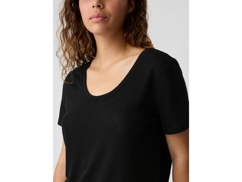 Dámské lněné tričko. S hlubokým výstřihem. Krátký rukáv a rovný střih. Materiál len a polyester. Materiál: 52% Flax(Linen), 48% Polyester ConventionalDoplňkové parametry