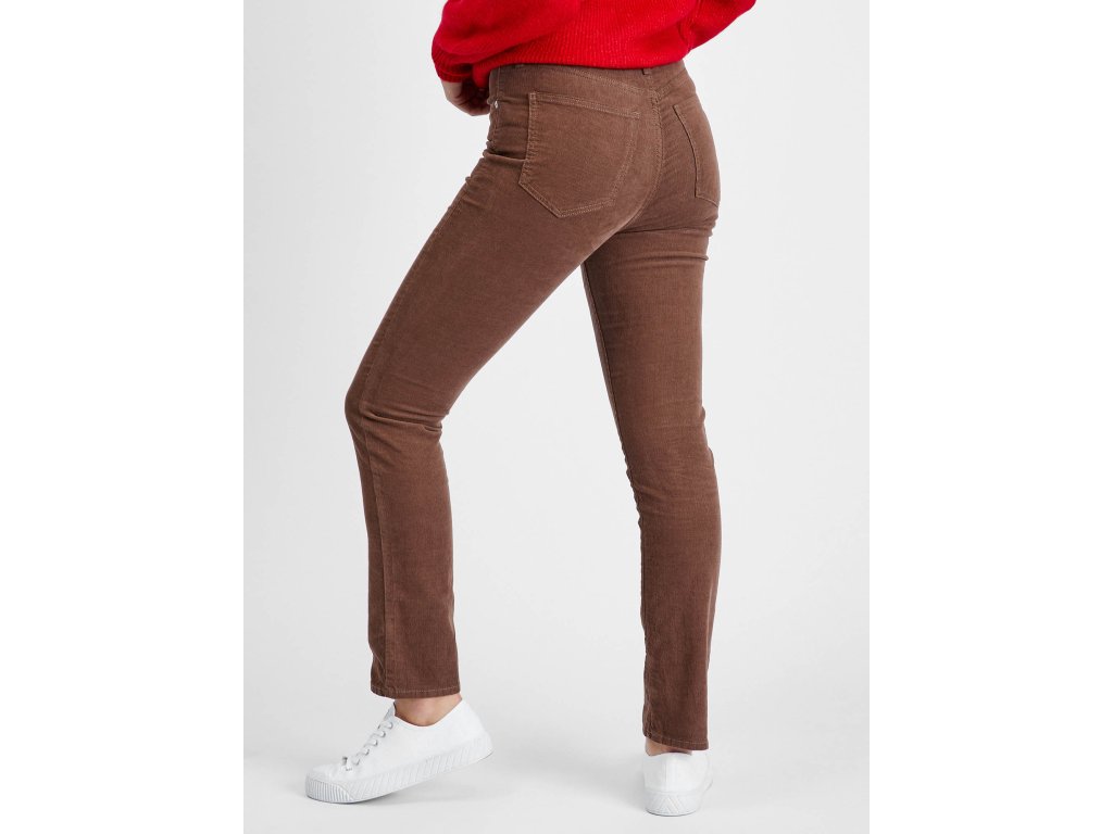 Dámské manšestrové kalhoty. Vysoký pas a slim střih. Pevný pas s poutky na pásek. Zapínání na zip a knoflík. Přední a zadní kapsy.Doplňkové parametry
