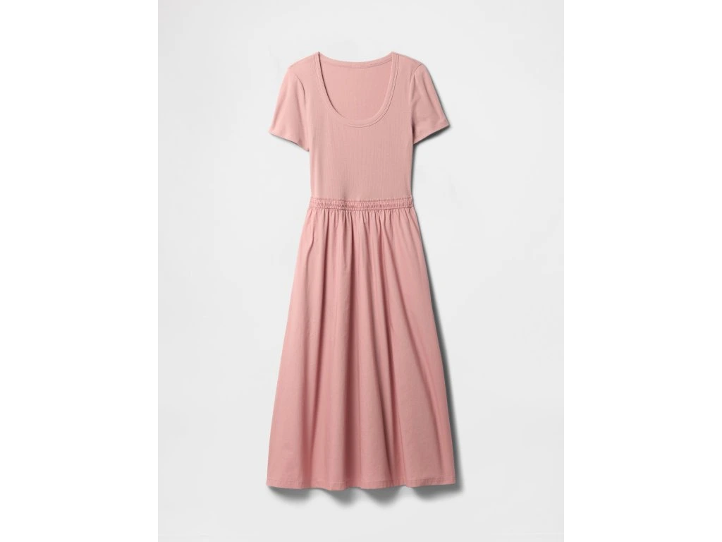 Dámské midi šaty s žebrovaným topem a popelínovou sukní spojují pohodlí s elegancí a jsou ideální pro každodenní nošení i formálnější příležitosti. Měkký, žebrovaný top se přizpůsobí postavě a poskytuje maximální komfort, zatímco vzdušná popelínová sukně dodává šatům sofistikovaný vzhled. Rovná silueta s volnějším střihem lichotí postavě, elastický pas s jemným řasením zvýrazňuje pas a zároveň zajišťuje pohodlné nošení. Krátké rukávy a kulatý výstřih podtrhují nadčasový styl. Praktické boční kapsy dodávají šatům ležérní prvek a funkčnost. Midi délka sahající pod kolena dělá z těchto šatů univerzální kousek, který lze snadno kombinovat pro elegantní i uvolněný vzhled.Doplňkové parametry