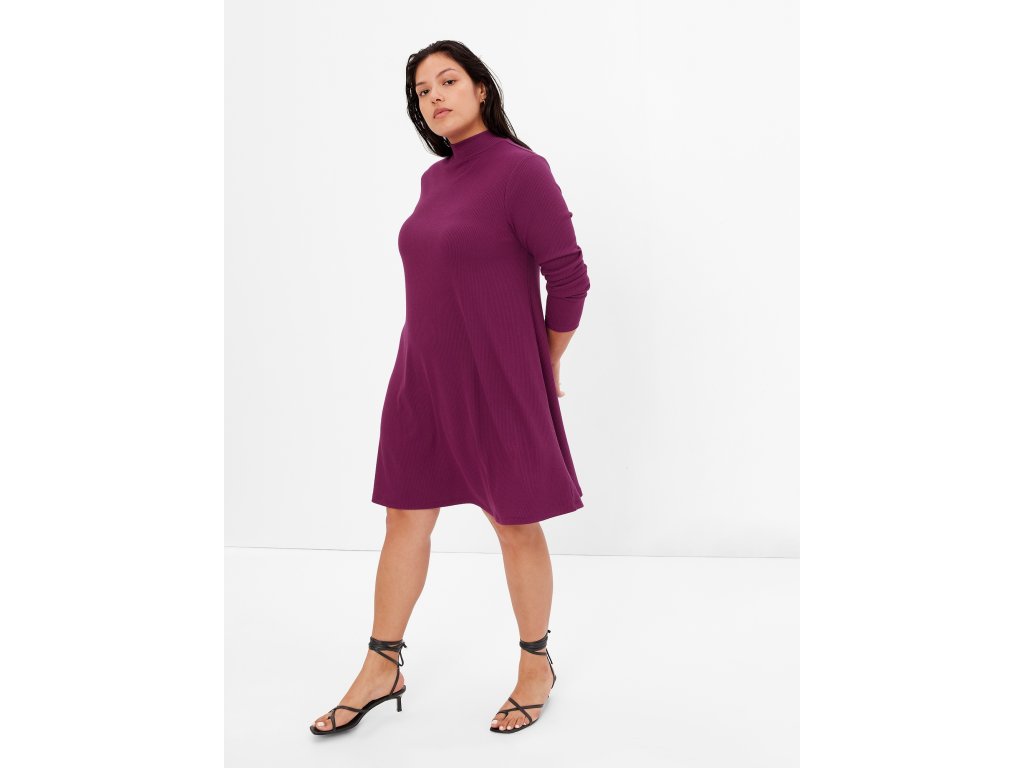 Dámské jednobarevné mini šaty. Drobný žebrovaný vzor. U krku stojáček a dlouhé rukávy. Volný střih do A.Doplňkové parametry