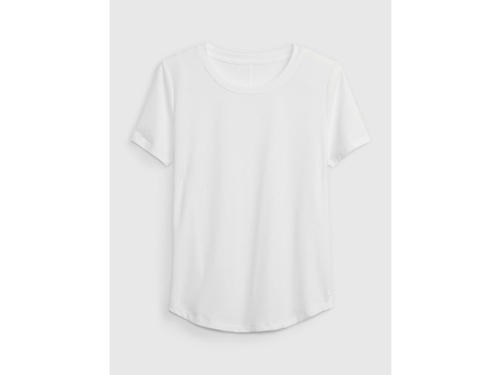 Měkké strečové dámské sportovní tričko. Kulatý výstřih. Krátké rukávy. Naše lehká a prodyšná tkanina s technologií odvodu vlhkosti, která odvádí pot od těla a udržuje vás v suchu a pohodlí. Rovná silueta s volným střihem. Délka po boky. Modelky nosící velikost Gap S jsou 172 cm – 180 cm vysoké s pasem 60 cm – 66 cm a boky 84 cm – 97 cm. Modelky nosící velikost Gap XL jsou 172 cm – 180 cm vysoké s pasem 86 cm – 91 cm a boky 114 cm – 127 cm.Více z kolekce GapFit >.