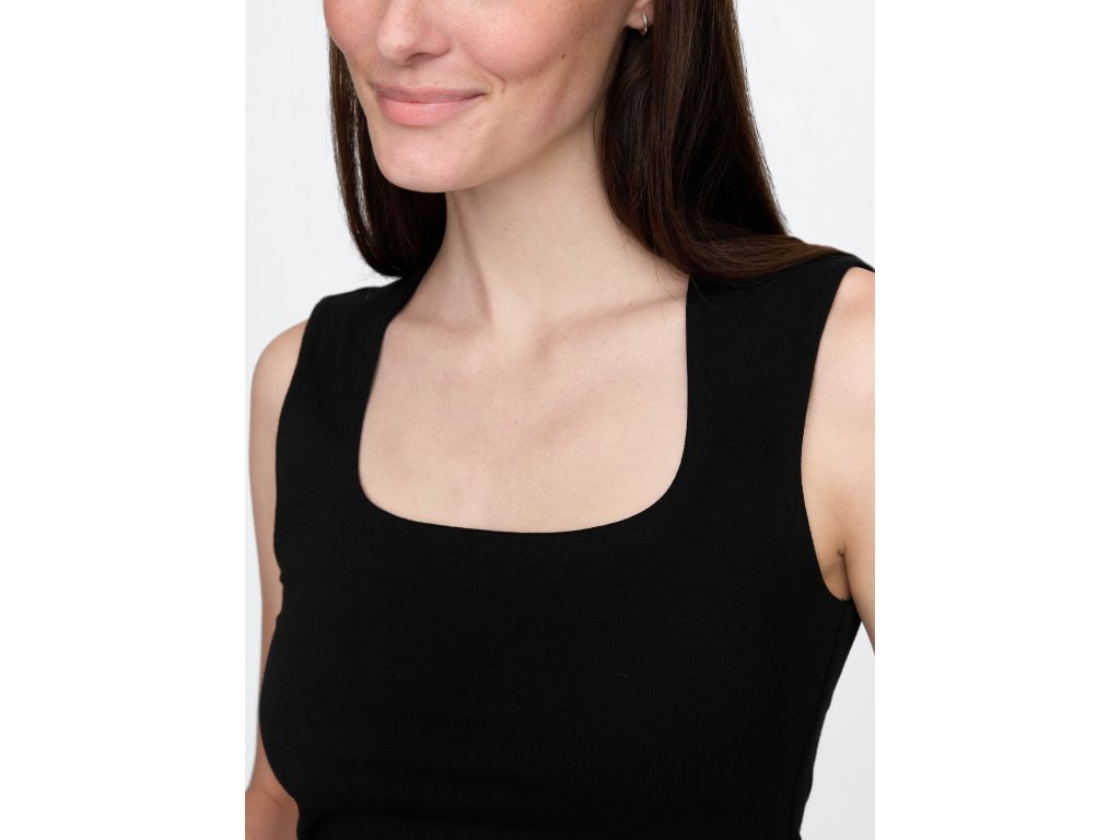 Dámský top z měkké, elastické bavlny je ideální volbou pro každodenní nošení, které poskytuje maximální pohodlí a styl. Čtvercový výstřih a bezrukávový střih dodávají topu elegantní a moderní vzhled. Vyroben z jemného bavlněného žerzeje s přídavkem pohodlného streče, který zajišťuje perfektní přilnutí k tělu a příjemný pocit po celý den. Díky čistým švům a lehkému materiálu se skvěle nosí jak samostatně, tak i jako základ pro vrstvení. Silueta topu je přiléhavá a délka sahá k bokům, což umožňuje snadné kombinování s různými outfity. Skvělý kousek pro ležérní i elegantní styl.Doplňkové parametry