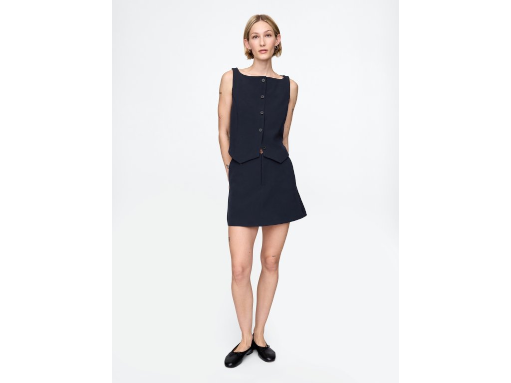 Elegantní a stylová vesta, která kombinuje pohodlí s ohleduplností k přírodě. Hladký materiál s obousměrnou pružností zajišťuje volnost pohybu a perfektní padnutí po celý den. Lodičkový výstřih, absence rukávů a zapínání na knoflíky dodávají vestě moderní a sofistikovaný vzhled. Vyrobená z 95 % recyklovaného polyesteru, přispívá ke snižování spotřeby zdrojů a odpadu oproti tradičním materiálům. Klasický střih vesty se snadno přizpůsobí různým typům postav a délka do pasu z ní dělá ideální kousek pro vrstvení. Skvělá volba pro pracovní schůzky i volnočasové aktivity – univerzální model, který můžete nosit celý den. Modelky ve velikosti S měří 172–180 cm, s pasem 60–66 cm a boky 84–97 cm. Modelky ve velikosti XL mají pas 86–91 cm a boky 114–127 cm.Doplňkové parametry