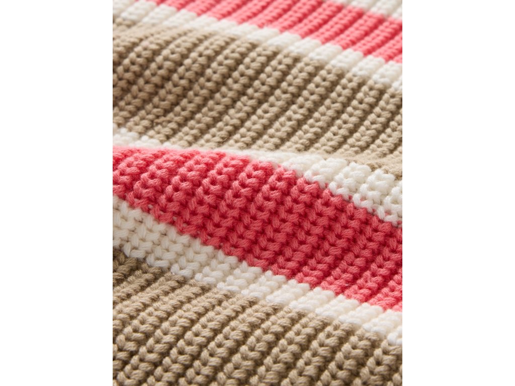 Měkký dámský svetr z pleteniny shaker-stitch s jemným designem barevných proužků je perfektní volbou pro pohodlný a stylový outfit. Má klasický kulatý výstřih, dlouhé rukávy a volný střih, který zajišťuje maximální komfort při nošení. Díky uvolněnému střihu se svetr snadno kombinuje s džínami nebo sukní pro ležérní a trendy vzhled. Pokud preferujete užší siluetu, doporučujeme zvolit o velikost menší. Modelky ve velikosti S měří 172–180 cm, mají pas 60–66 cm a boky 84–97 cm. Modelky ve velikosti XL mají pas 86–91 cm a boky 114–127 cm.Doplňkové parametry