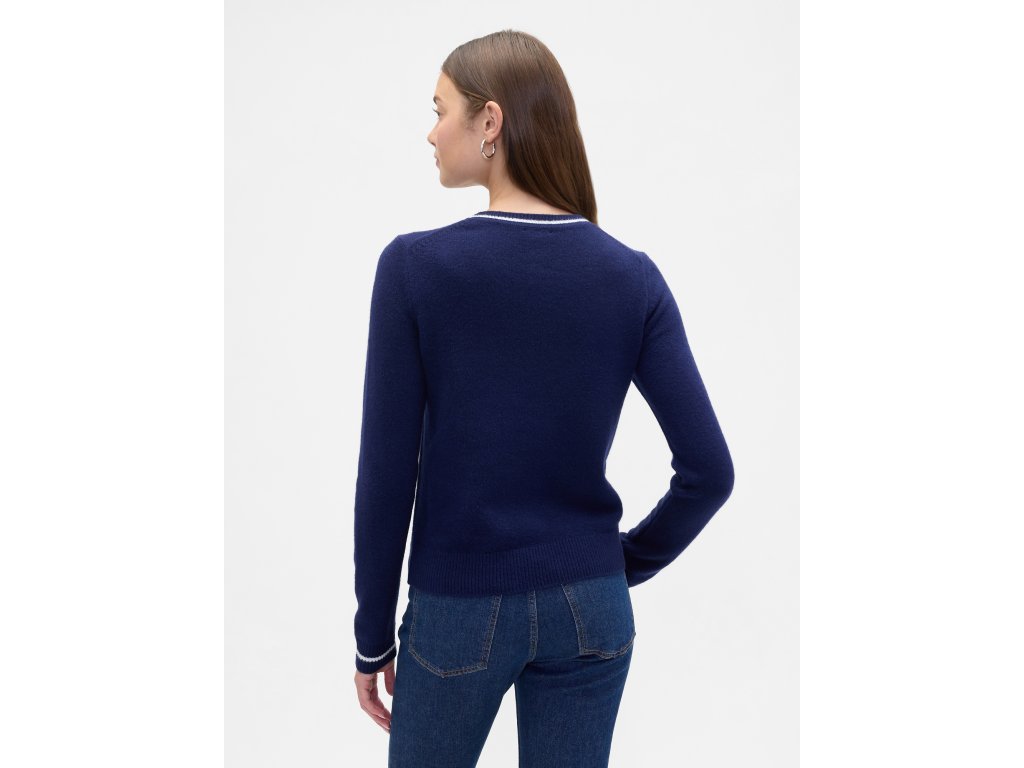 Dámský svetr upletený z naší nejprodávanější látky CashSoft, která je kašmírově jemná na dotek a přináší pocit každodenního luxusu. Středně silná příze s jemným vlasem a speciální úpravou působí hřejivě, měkce a zároveň je nenáročná na údržbu. Klasický design doplňuje kulatý výstřih zdobený kontrastním proužkem, dlouhé rukávy s pruhovanými žebrovanými manžetami a vyšívané varsity logo Gap na hrudi. Žebrovaný spodní lem drží tvar a zajišťuje pohodlné nošení. Materiálová směs s bavlnou spojuje komfort, měkkost i dlouhou životnost. Střih Classic fit je rovný a snadno padne, délka sahá ke kyčlím. Modelky ve velikosti S měří 172–180 cm, mají pas 60–66 cm a boky 84–97 cm, modelky ve velikosti XL měří 172–180 cm, pas 86–91 cm a boky 114–127 cm. Materiál: 53% Cotton Better Cotton (Bci), 24% Nylon Conventional, 23% Acrylic ConventionalDoplňkové parametry