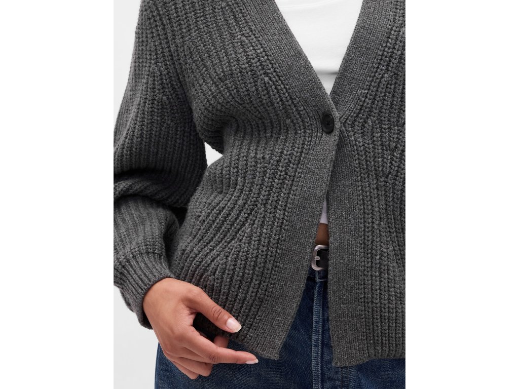 Dámský kardigan je upletený z měkké žebrované pleteniny a díky mírně zkrácené délce se snadno kombinuje se šaty i džínami. Má hluboký výstřih do V, zapínání na knoflíky a dlouhé barrel rukávy zakončené žebrovanými manžetami. Žebrovaný je také spodní lem, který kardiganu dodává strukturu a tvar. Střih Relaxed je rovný a pohodlný. Délka sahá nad boky. Modelky ve velikosti S měří 172–180 cm, mají pas 60–66 cm a boky 84–97 cm. Modelky ve velikosti XL měří 172–180 cm, mají pas 86–91 cm a boky 114–127 cm. Pokud preferujete užší střih, doporučujeme zvolit o jednu velikost menší. Materiál: 60% Cotton Better Cotton (Bci), 30% Nylon Conventional, 10% Wool ConventionalDoplňkové parametry