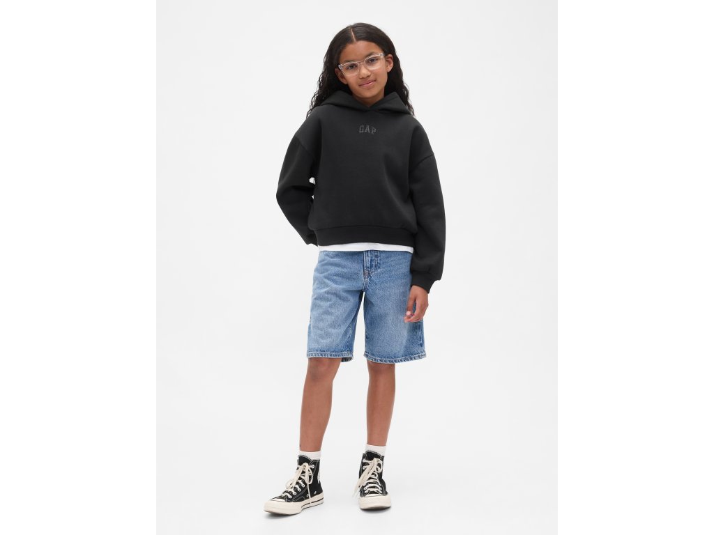 Dívčí mikina s kapucí z jemného fleecu nabízí celodenní pohodlí díky hebce česanému vnitřku a hladkému vnějšímu povrchu. Vyrobena z měkké bavlněné směsi s 23 % recyklovaného polyesteru – šetrnější volba vůči přírodním zdrojům. Mikina má kapuci, spadlá ramena, dlouhé rukávy s pružnými manžetami a rovný spodní lem. Přední i zadní část zdobí ikonické logo Gap. Relaxed fit zajišťuje volný střih sahající ke kyčlím. Vyrobeno v rámci programu RISE na podporu rovnosti žen v oděvním průmyslu. Pokud preferujete užší střih, doporučujeme zvolit o velikost menší.Doplňkové parametry