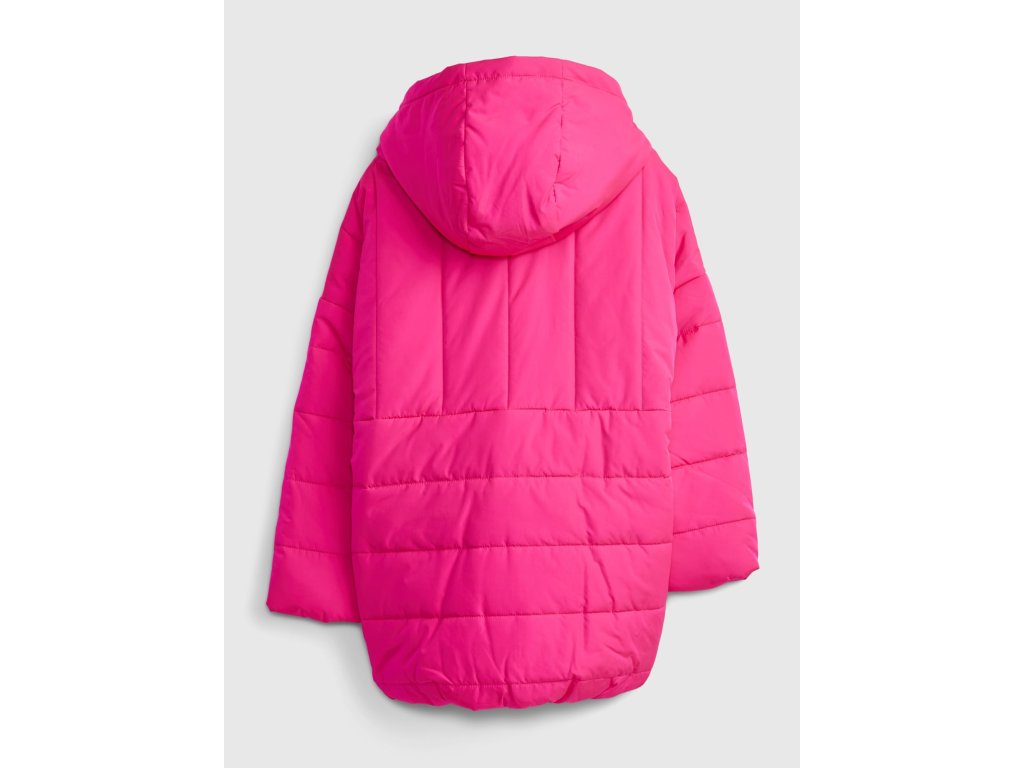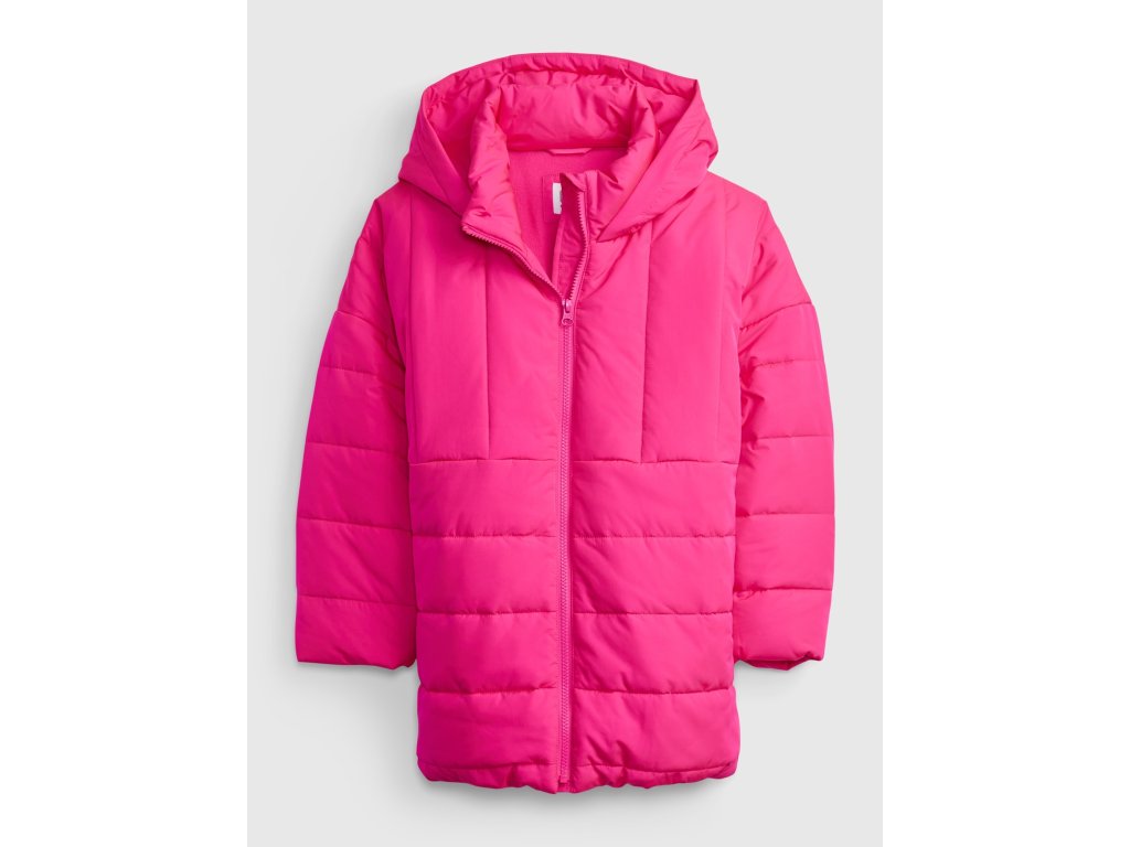 Dívčí zimní bunda v růžové barvě. Zapínání na zip a velká kapuce. Kapuci nelze odepnout. Vatovaná delší střih.Oblečení označené jako Gap for Good je vyrobeno s ohledem k naší planetě, a proto používáme přírodní nebo recyklované materiály a zároveň se snažíme snížit dopad výroby na vodní zdroje. Více se dozvíte na Gap for Good.