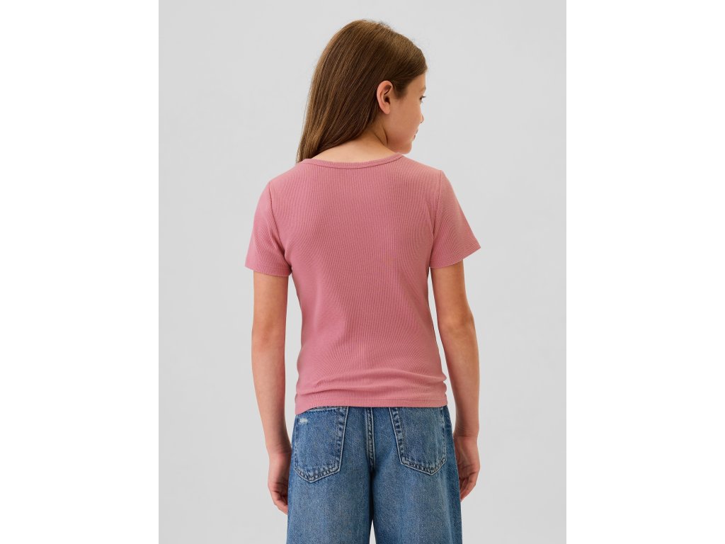 Dětské žebrované tričko. Kulatý výstřih. Krátké rukávy. Měkký materiál. Rovný a pohodlný střih. Délka končící v úrovni boků.Doplňkové parametry