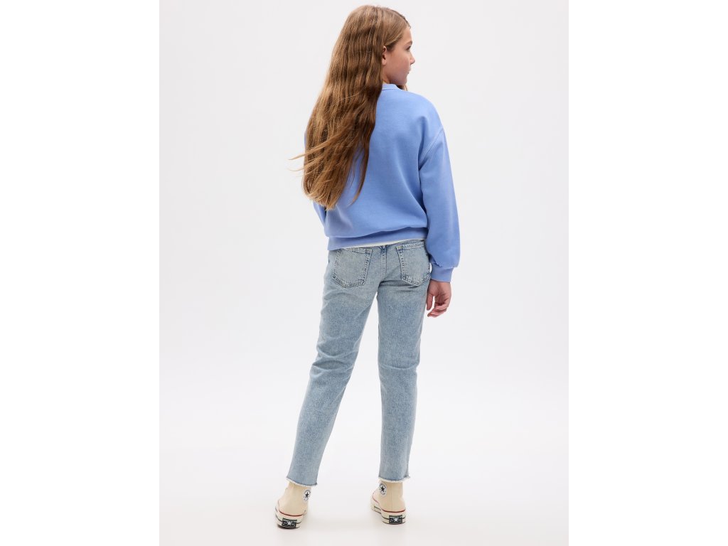 Dětské džíny girlfriend. Pevný pas se zapínáním na zip a knoflík. Poutka na pásek. Přední a zadní kapsy. Nezapošité konce nohavic. 5% recyklovaná bavlna. Program Washwell.Doplňkové parametry