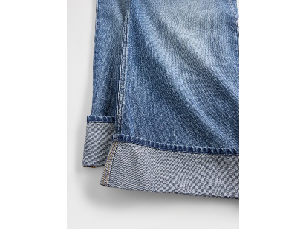 Dívčí džíny z autentického denimu s Relaxed střihem nabízejí pohodlí a styl v moderním baggy provedení. Vyrobeny z pevného, nepružného denimu ve středně modrém praní, které dodává klasický vzhled snadno kombinovatelný s tričkem, mikinou i svetrem. Pružný pas s falešným poklopcem usnadňuje oblékání a zajišťuje pohodlné nošení. Design s pěti kapsami a našité ohrnuté lemy nohavic přidávají ležérní nádech. Relaxed fit s nízkým sedem a širokou nohavicí poskytuje volnost pohybu a pohodlí po celý den. Džíny obsahují 5 % recyklované bavlny a jsou součástí programu Washwell, který při výrobě šetří vodu minimálně o 20 % oproti běžným metodám. Vyrobeno v továrně zapojené do iniciativy RISE na podporu rovnosti a postavení žen. Materiál: 95% Cotton Better Cotton (Bci), 5% Cotton RecycledDoplňkové parametry