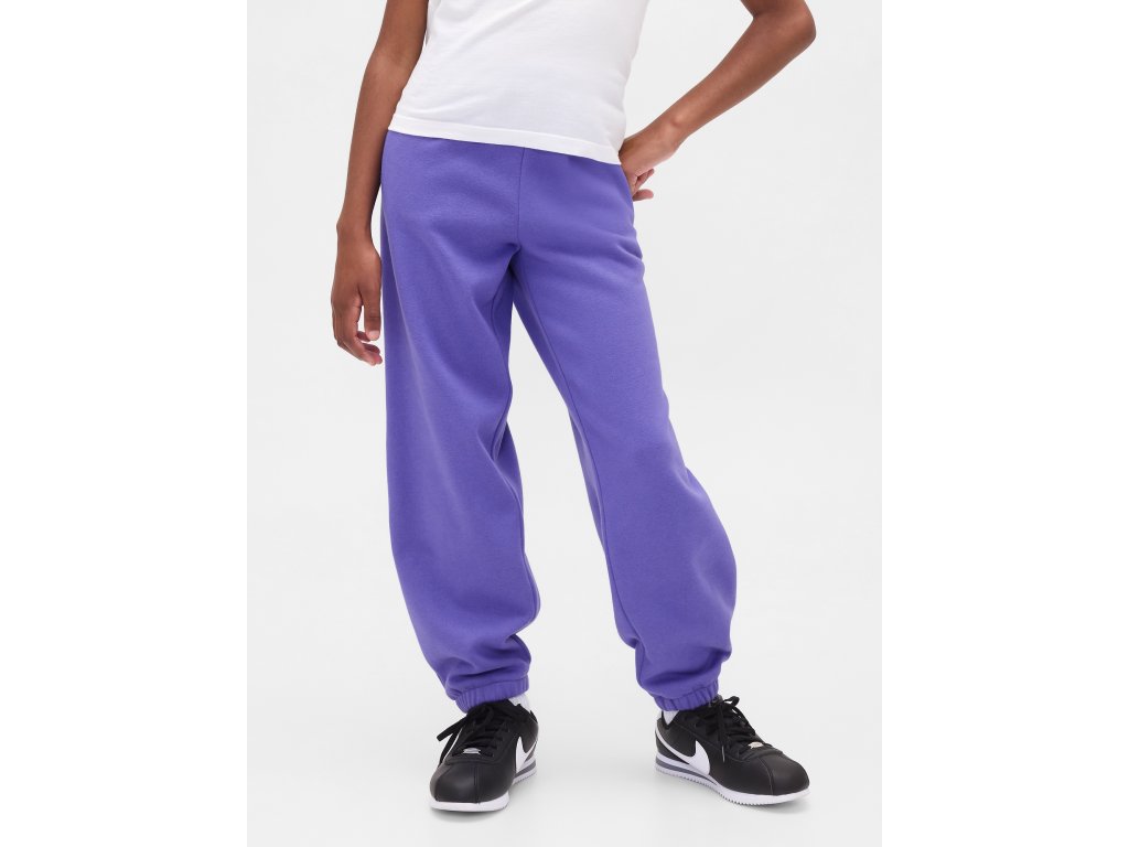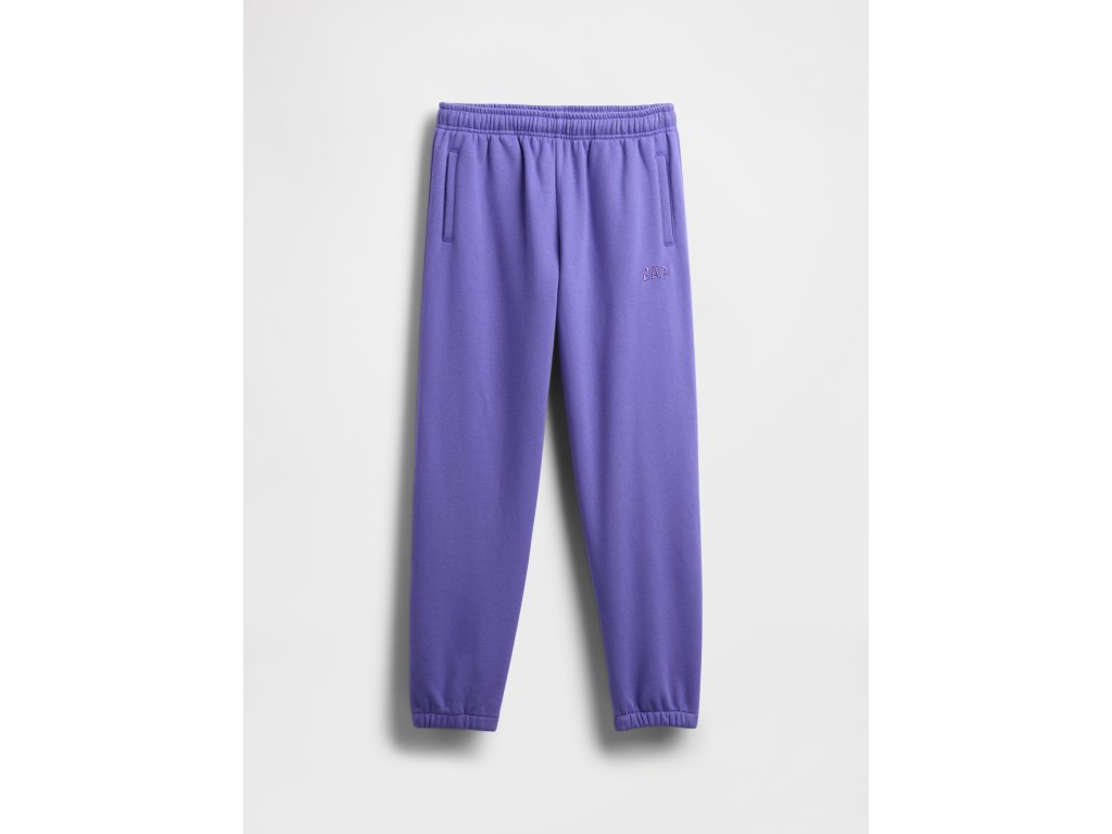Dívčí tepláky z jemné teplákoviny nabízejí celodenní pohodlí – zvenku hladké, uvnitř hebce česané, ideální na volný čas i domácí odpočinek. Vyrobeny ze směsi bavlny a 23 % recyklovaného polyesteru, který přispívá k šetrnějšímu využívání přírodních zdrojů. Pružný pas se skrytými stahovacími šňůrkami umožňuje pohodlné přizpůsobení, boční kapsy a elastické lemy nohavic zajišťují volnost pohybu. Přední část zdobí decentní logo Gap. Střih Relaxed fit je volný po celé délce, nohavice sahají ke kotníkům. Materiál: 100% Cotton Better CottonDoplňkové parametry