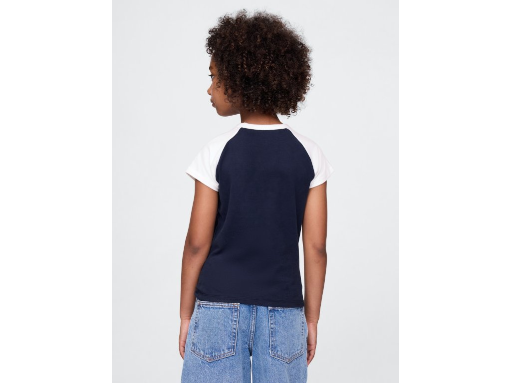 Pohodlné tričko z měkkého a pružného bavlněného úpletu poskytuje maximální komfort při nošení. Díky jemnému strečovému materiálu skvěle padne a umožňuje volnost pohybu po celý den. Kulatý výstřih s kontrastním lemem dodává tričku sportovní vzhled, zatímco barevně odlišené raglánové rukávy přidávají moderní a dynamický prvek. Na přední straně se nachází ikonické logo Gap New York, které dotváří stylový design. Tričko má přiléhavější střih Close to the Body, který dobře sedí na těle, a délka sahá na boky, což umožňuje snadné kombinování s džínami, kraťasy nebo tepláky. Skvělá volba pro malé milovníky pohodlí a stylu, ideální na každodenní nošení. Materiál: 95% Cotton 5% ElastaneDoplňkové parametry