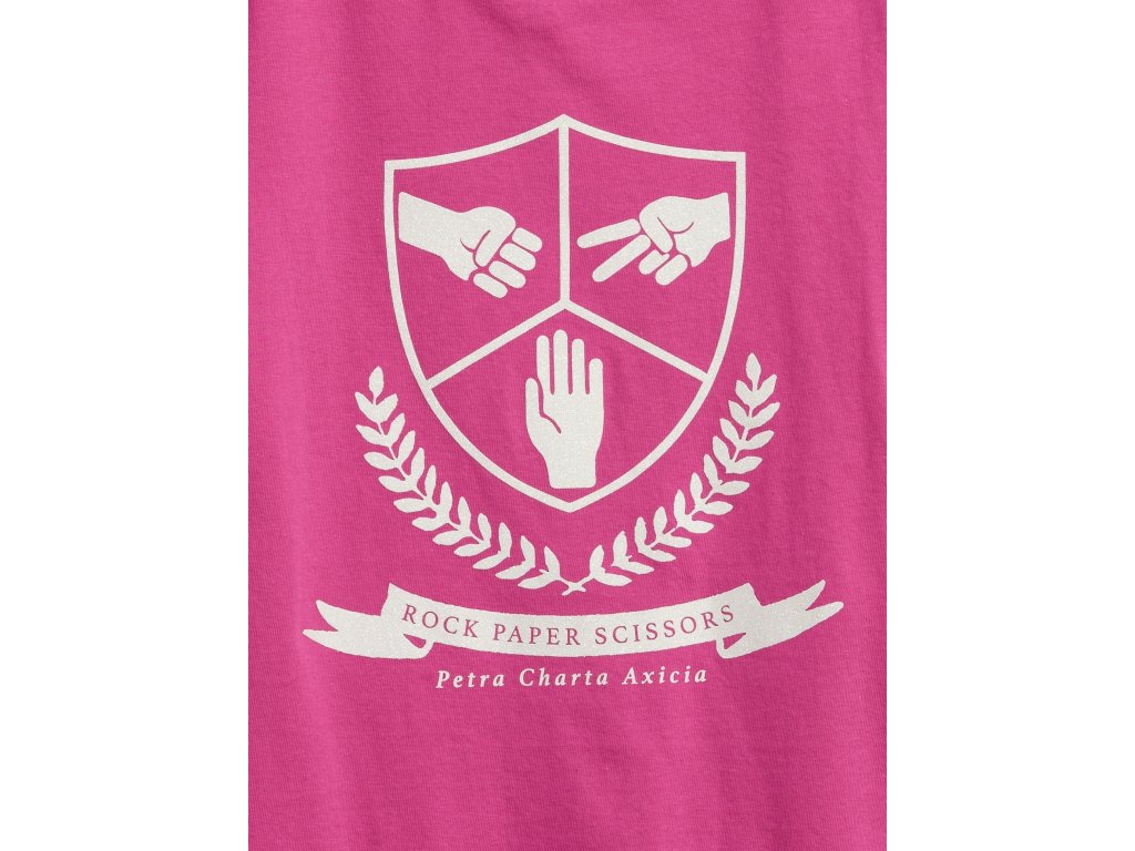 Dětské tričko s potiskem na přední straně. Sytě růžová barva a bílý potisk. Krátké rukávy a kulatý výstřih. Zaoblený spodní lem. 100% organická bavlna.Doplňkové parametry