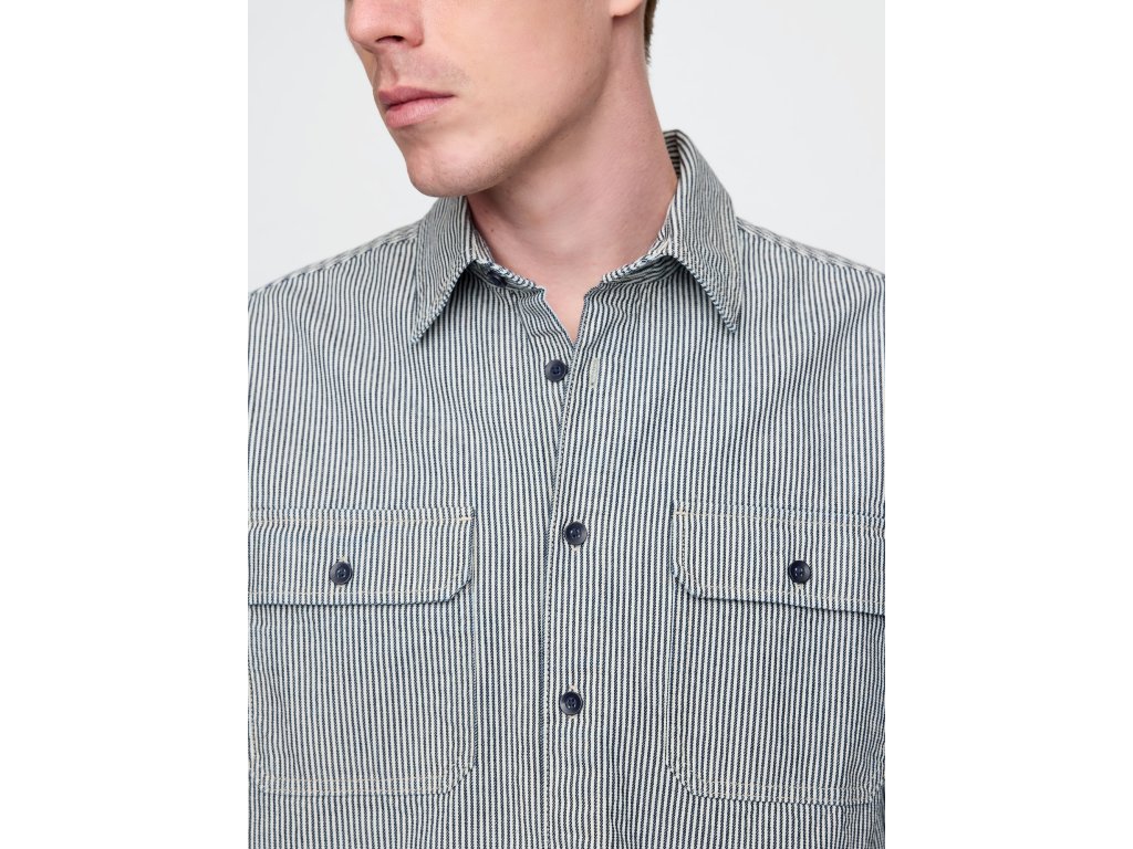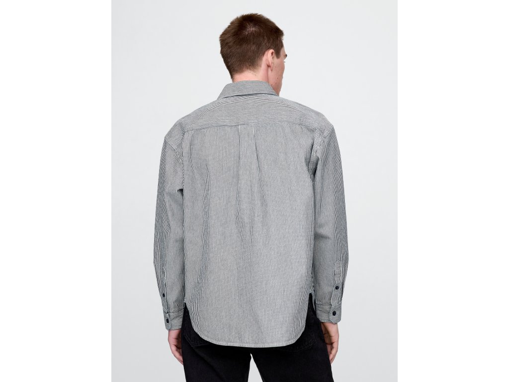 Autentická džínová košile ve volném střihu, vyrobená z pevného denimu bez elastanu, nabízí nadčasový a univerzální styl. Má klasický límeček, dlouhé rukávy s manžetami na knoflíky a přední zapínání na knoflíky. Na hrudi jsou dvě kapsy s knoflíkovou klopou, zatímco celoplošný džínový pruhovaný vzor dodává moderní a ležérní vzhled. Tato džínová košile je součástí programu Washwell, který ve srovnání s běžnými metodami praní spotřebuje alespoň o 20 % méně vody, a od roku 2016 tak pomohl ušetřit více než miliardu litrů vody. Vyrobeno z 5 % recyklované bavlny, což přispívá k odpovědnému využívání přírodních zdrojů a snižování odpadu. Tento produkt pochází z výrobny, která podporuje rovnost pohlaví a posílení postavení žen prostřednictvím programů RISE a P.A.C.E. od Gap Inc. Programy RISE a P.A.C.E. pomáhají pracovníkům v oděvním průmyslu získat dovednosti, znalosti, sebevědomí a odolnost potřebnou k profesnímu i osobnímu růstu. Košile má volný oversize střih, který pohodlně padne na tělo. Pro užší střih doporučujeme zvolit o jednu až dvě velikosti menší. Délka sahá k bokům. Modelové ve velikosti M měří 185–188 cm, mají pas 79 cm a délku vnitřního švu 81–84 cm.Doplňkové parametry