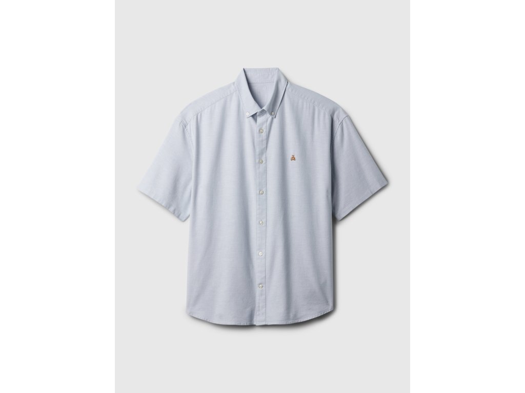 Pánská Oxford košile s výšivkou Brannan Bear je nadčasovou klasikou v moderním pojetí – stylový základ šatníku pro každou příležitost. Je ušitá z měkké, kvalitní bavlny, která je příjemná na dotek, prodyšná a pohodlná při celodenním nošení. Skvěle poslouží do práce, na víkendová setkání i neformální večery s přáteli. Klasický límeček, krátké rukávy a celopropínací zapínání na knoflíky podtrhují tradiční vzhled s moderním nádechem. Na hrudi ji oživuje decentní výšivka ikonického medvídka Brannana – jemný detail, který přidává košili osobitost. Rovný střih easy fit se pohodlně nosí a neomezuje v pohybu, zároveň přirozeně kopíruje siluetu. Délka po boky umožňuje nosit ji volně i zastrčenou – podle příležitosti nebo osobního stylu. Skvěle ladí s džínami, chino kalhotami i kraťasy – univerzální kousek, který se v šatníku rozhodně neztratí. Modelové na fotkách mají velikost M, měří 185–188 cm, pas 79 cm a vnitřní délku nohavic 81–84 cm.Seznamte se s roztomilým méďou Brannan, který je maskotem GAP již více než 20 let. Drobnou značkou medvídka je označeno pouze nejhebčí a nejměkčí dětské oblečení. Vyzkoušejte měkkost a hebkost vybraných materiálů a dopřejte svému děťátku pohodlí po celý den. Medvídek Brannan je tu pro vás.