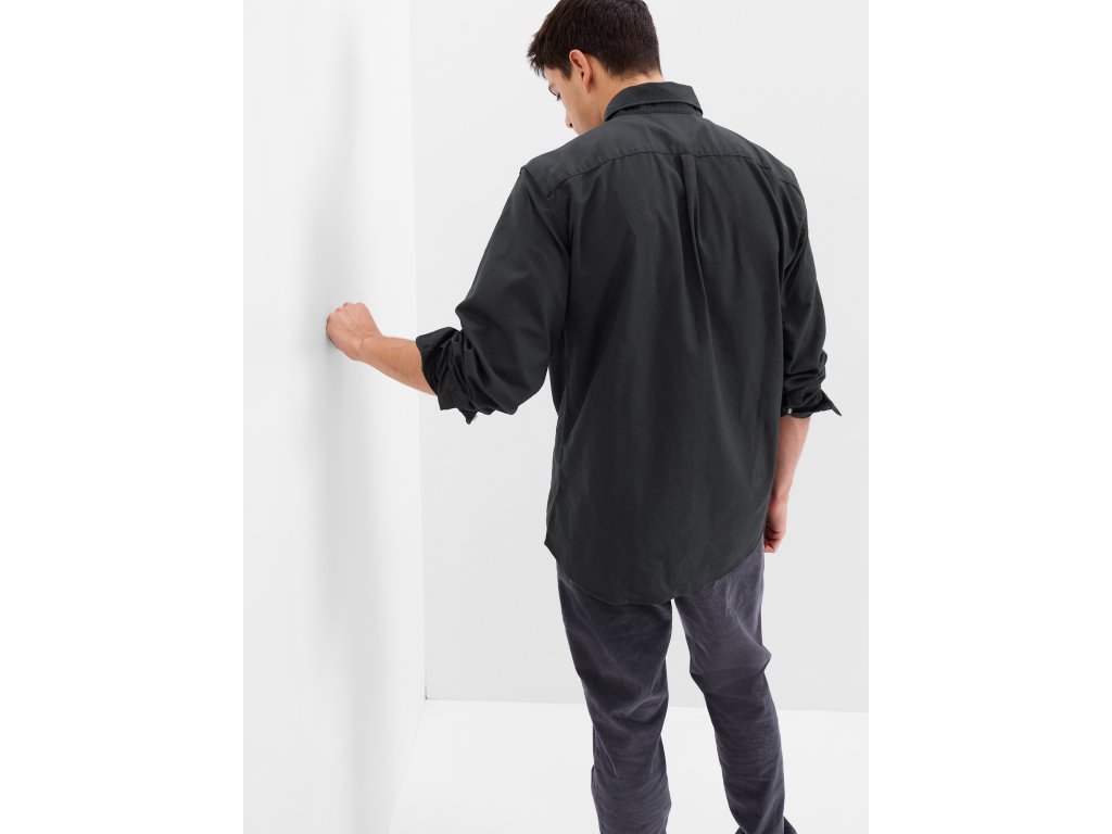 Klasická pánská košile z hladkého bavlněného Oxfordu s příměsí elastanu představuje perfektní kombinaci stylu a pohodlí. Má button-down límeček, dlouhé rukávy s manžetami na knoflíky a zapínání na knoflíky po celé délce. Praktická náprsní kapsa na hrudi dodává na funkčnosti. Košile je vyrobena z 98 % bavlny pocházející z přechodového období na organické zemědělství, které podporuje farmáře během tříleté transformace na ekologické postupy bez použití syntetických pesticidů a hnojiv. Tento produkt vznikl ve výrobním závodě zapojeném do programu Gap Inc. P.A.C.E. Tato vzdělávací iniciativa podporuje rozvoj dovedností, sebedůvěry a odolnosti žen, které se podílejí na výrobě našeho oblečení. Košile má štíhlý střih v oblasti hrudníku a ramen, což jí dodává moderní a elegantní vzhled. Je navržena tak, aby ji bylo možné nosit zastrčenou i volně, s délkou sahající k bokům. Ideální na formální příležitosti i neformální chvíle mimo pracovní dobu. Modelové měří 185–188 cm, mají pas 79 cm a délku nohavic 81–84 cm, a nosí velikost M nebo 32 x 32. Materiál: 98% Cotton 2% ElastaneDoplňkové parametry