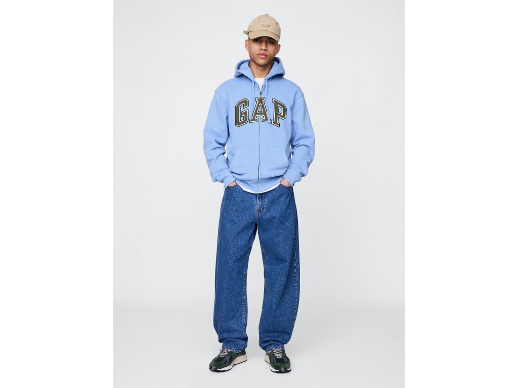 Pánská mikina na zip z materiálu VintageSoft ve střihu Relaxed Fit – ideální pro pohodlné nošení každý den Vyrobená z mimořádně měkké bavlněné směsi s hladkým povrchem a jemně česaným vnitřkem Materiál VintageSoft – hebký a příjemný už od prvního obléknutí Volný střih s rovnou siluetou a uvolněnými rukávy pro volnost pohybu Délka sahá k bokům – snadno kombinovatelná s dalšími kousky Dvojitá kapuce se stahovacími šňůrkami, celopropínací zip, žebrované manžety a spodní lem Ikonické logo Gap na hrudi pro klasický sportovní vzhled Vyrobeno v továrně podporující rovnost žen a jejich vzdělávání (programy RISE a P.A.C.E.) Model: výška 185–188 cm, pas 79 cm, vnitřní délka nohavic 81–84 cm, velikost M Materiál: 77% Cotton Better Cotton (BCI), 23% Polyester RecycledDoplňkové parametry