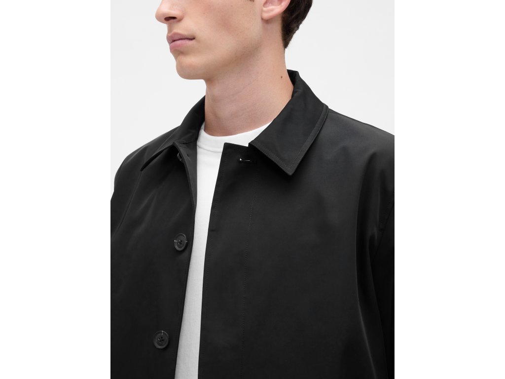 Pánský voděodolný kabát v Relaxed střihu spojuje klasický styl s funkčním provedením pro proměnlivé počasí. Vyrobený z hladké tkaniny s voděodolnou úpravou, která odpuzuje déšť a udrží vás v suchu. Čistý design s límcem, skrytým zapínáním na knoflíky a šikmými předními kapsami se snadno kombinuje s oblekem i volnočasovým outfitem. Dlouhé rukávy a jednoduchá silueta umožňují pohodlné vrstvení. Vyrobeno v továrně zapojené do programu RISE, který podporuje rovnost pohlaví a posílení postavení žen. Relaxed fit nabízí rovný a uvolněný střih s dostatečnou volností v rukávech. Kabát sahá přibližně ke lýtkům. Modelové měří 185–188 cm, mají pas 79 cm, vnitřní délku nohavic 81–84 cm a nosí velikost M. Pro užší střih doporučujeme zvolit o číslo menší velikost.Doplňkové parametry