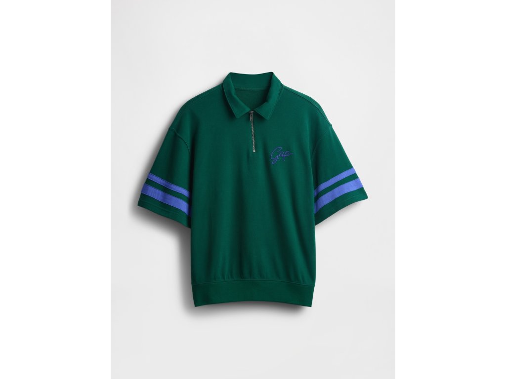 Pánská mikina s límečkem a krátkým rukávem přináší sportovně-ležérní vzhled s promyšlenými detaily. Vyrobená z měkké bavlněné směsi s česanou vnitřní stranou pro extra hebkost a hladkým povrchem zvenčí. Každý kus má mírně odlišnou strukturu, díky čemuž je originální a příjemný na nošení. Košilový límeček s zipem umožňuje snadno upravit výstřih podle potřeby – od sportovního po elegantnější vzhled. Krátké rukávy a volnější střih z ní dělají ideální volbu pro přechodná období nebo vrstvení. Na hrudi je decentní výšivka loga Gap ve skript stylu, která podtrhuje nadčasový sportovně-elegantní charakter. Spodní lem je zakončen pružným lemem, který drží tvar a dobře sedí na těle. Střih oversize fit nabízí volnost a maximální pohodlí bez pocitu těsnosti. Délka sahá ke kyčlím – skvěle se kombinuje s džínami, chinos kalhotami nebo šortkami. Modelové měří 185–188 cm, mají obvod pasu 79 cm a délku vnitřní nohavice 81–84 cm, na sobě nosí velikost M. Pokud preferujete užší střih, doporučujeme zvolit o jednu až dvě velikosti menší. Materiál: 77% Cotton Better Cotton (BCI), 23% Polyester RecycledDoplňkové parametry