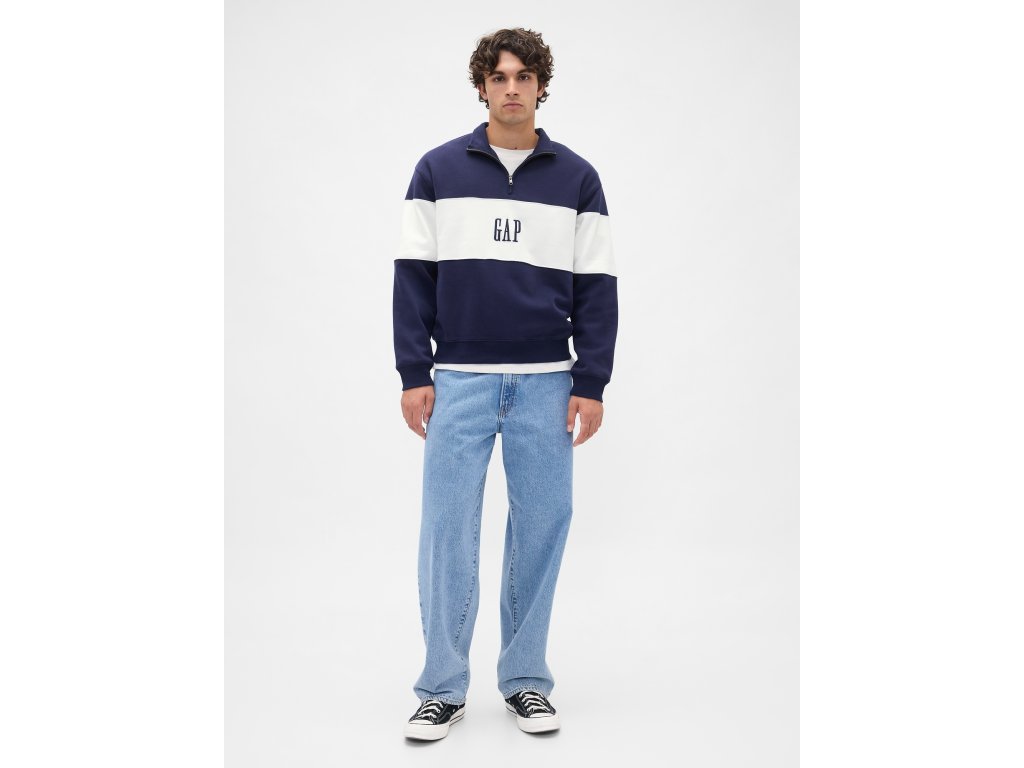 Pánská mikina s polovičním zipem z měkkého fleecu je pohodlný, stylový kousek, který se skvěle hodí pro volný čas i každodenní nošení. Z vnější strany hladká, uvnitř příjemně česaná pro maximální komfort – každý kus je jedinečný díky specifickému zpracování materiálu. Mikina má stojáček se zapínáním na zip, dlouhé rukávy s žebrovanými manžetami a žebrovaný spodní lem, který drží tvar a dobře sedí na těle. Design a ikonické logo Gap na hrudi dodávají mikině moderní sportovní styl. Vyrobena z bavlněné směsi obsahující 27 % bavlny ověřené programem U.S. Cotton Trust Protocol, který podporuje ekologicky šetrné zemědělství. Volnější oversize střih pro uvolněný vzhled, délka sahá k bokům. Pokud preferujete užší střih, doporučujeme zvolit o jednu až dvě velikosti menší.Doplňkové parametry