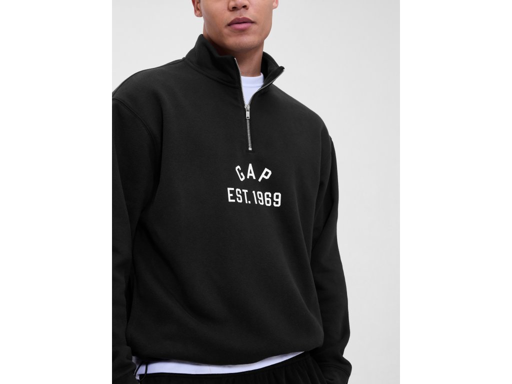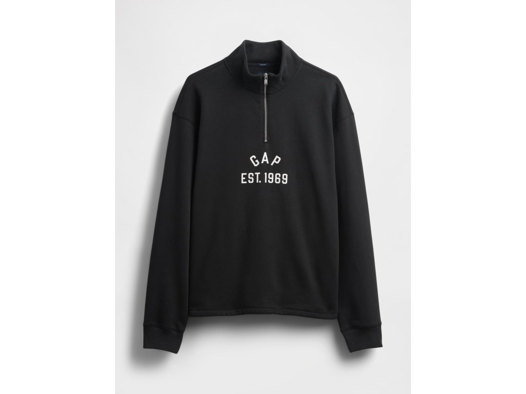 Pánská mikina z ultra měkkého fleecu je hladká zvenku, jemně česaná uvnitř a ideální pro každodenní pohodlí. Má moderní stojáček, čtvrtinové zapínání na zip, spadlá ramena, dlouhé rukávy s pružnými manžetami a stahovací gumičku ve spodním lemu. Na hrudi je logo GAP. Střih Oversize sahá ke kyčlím a působí volně a ležérně. Model měří 185–188 cm, má pas 79 cm a nosí velikost Gap M. Pro užší vzhled doporučujeme zvolit o jednu až dvě velikosti menší. Materiál: 77% Cotton Better Cotton (Bci), 23% Polyester RecycledDoplňkové parametry