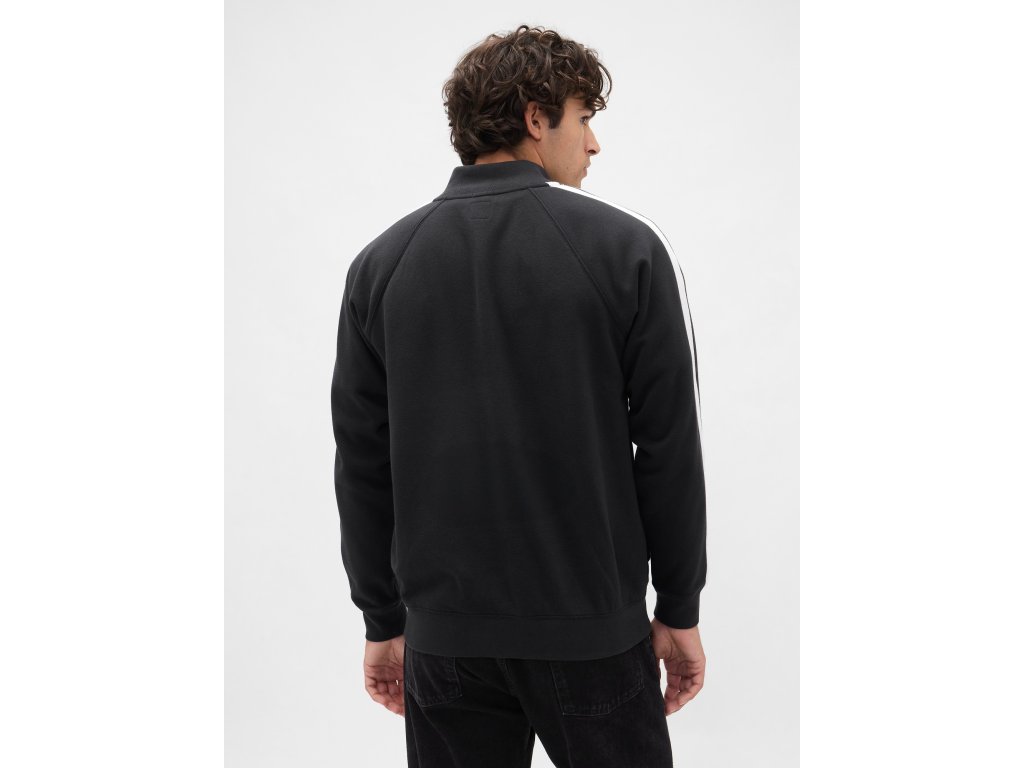 Pánská tepláková bunda z fleecu s bočními pruhy spojuje pohodlí a sportovní styl – ideální pro každodenní nošení i volnočasové aktivity. Vyrobena z měkkého fleecu s 77 % bavlny, z toho 27 % tvoří tzv. Protocol bavlna ověřená programem U.S. Cotton Trust Protocol, a 23 % recyklovaného polyesteru – pro nižší spotřebu surovin a menší ekologickou stopu. Uvnitř jemně česaná, zvenku hladká a příjemná na dotek. Bunda má stojáček, zip po celé délce, dlouhé rukávy s kontrastními pruhy a žebrované manžety i spodní lem. Na hrudi je vyšité logo Gap. Střih: rovný, pohodlný, sahá ke kyčlím. Modelové měří 185–188 cm, mají pas 79 cm, vnitřní délku švu 81–84 cm a nosí velikost Gap M. Pokud preferujete užší střih, doporučujeme zvolit o jednu velikost menší.Doplňkové parametry