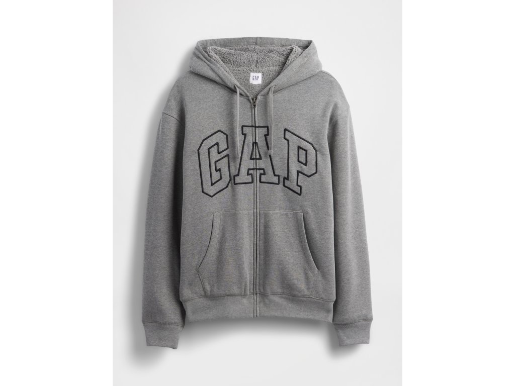 Pánská mikina s hřejivou sherpa podšívkou je ideální volbou pro chladnější dny. Vyrobená z měkkého fleecu, který je na dotek příjemný a pohodlný při nošení. Uvnitř má celoplošnou podšívku ze sherpy pro maximální teplo. Mikina má kapuci se stahovacími šňůrkami, zapínání na zip, spadlá ramena a dlouhé rukávy s žebrovanými manžetami. Kapsy vpředu a logo Gap na hrudi dotváří klasický vzhled. Rovný, volnější střih sahá pod boky – ideální na vrstvení i samostatné nošení. Materiál: 58% Cotton Better Cotton (Bci), 42% Polyester RecycledDoplňkové parametry