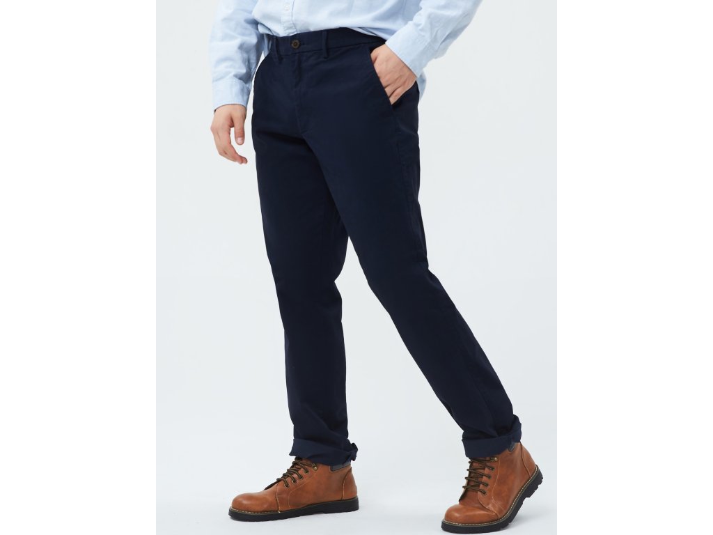 Pánské khaki kalhoty. Pohodlný straight střih. Pevný pas s poutky na pásek. Se zapínáním na zip a knoflík. Přední šikmé kapsy. Zadní zapuštěné kapsy na knoflík.Doplňkové parametry