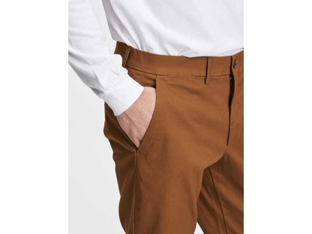 Pánské kalhoty khakis. Pohodlný slim střih. Klasické zapínání na zip a knoflík. Pevný pas a poutka na pásek. Přední a zadní kapsy. Bavlněné s elastanem.Doplňkové parametry