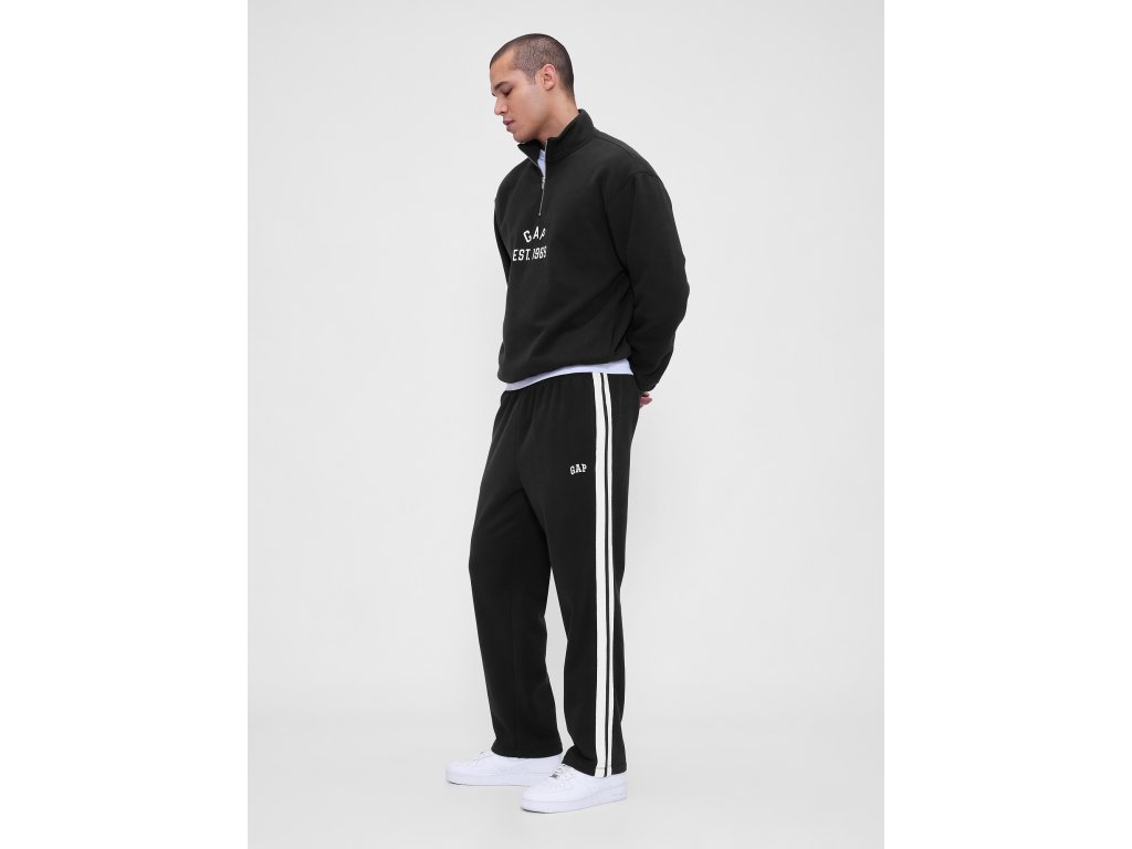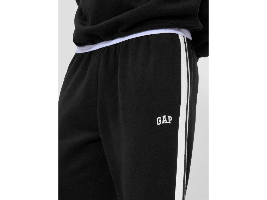 Pánské fleecové tepláky s bočními pruhy přinášejí maximální pohodlí a sportovní styl. Vyrobeny z měkké směsi s 27 % bavlny ověřené programem U.S. Cotton Trust Protocol a 23 % recyklovaného polyesteru – pomáhají tak snižovat spotřebu vody, surovin i množství odpadu. Zvenku hladké, uvnitř hebce česané, zajišťují příjemný pocit po celý den. Každý kus je originál díky specifickému zpracování materiálu. Tepláky mají elastický pas s vnitřními stahovacími šňůrkami, boční kapsy a zadní našitou kapsu. Kontrastní pruhy po stranách a logo Gap na boku dodávají sportovní vzhled. Volný střih s rovným zakončením nohavic je ideální na každý den, relax i volnočasové aktivity. Modelové měří 185–188 cm, mají pas 79 cm a vnitřní délku švu 81–84 cm. Na sobě mají velikost Gap M. Materiál: 77% Cotton Better Cotton (Bci), 23% Polyester RecycledDoplňkové parametry